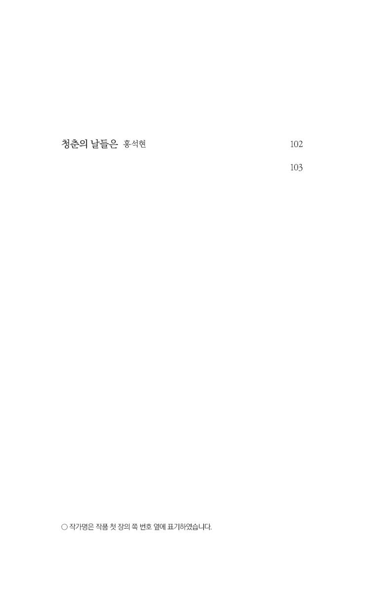 세간에서는 헛되이 보내지 말라고 하거나, 당연히 아프다거나, 인생에 단 한 번 뿐인 기회처럼 말합니다. 하지만 청춘에 자격은 없고 언제 어디서든 다시 시작할 수 있음을 이제는 압니다.