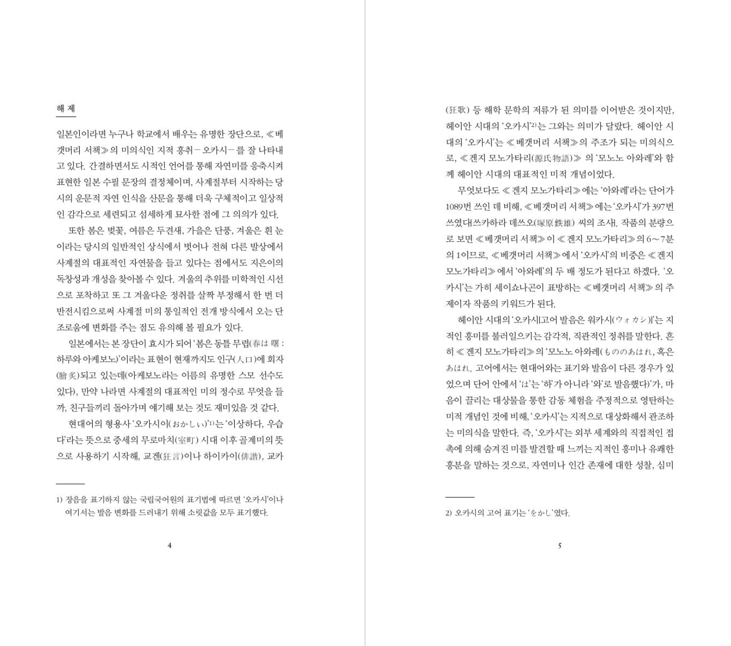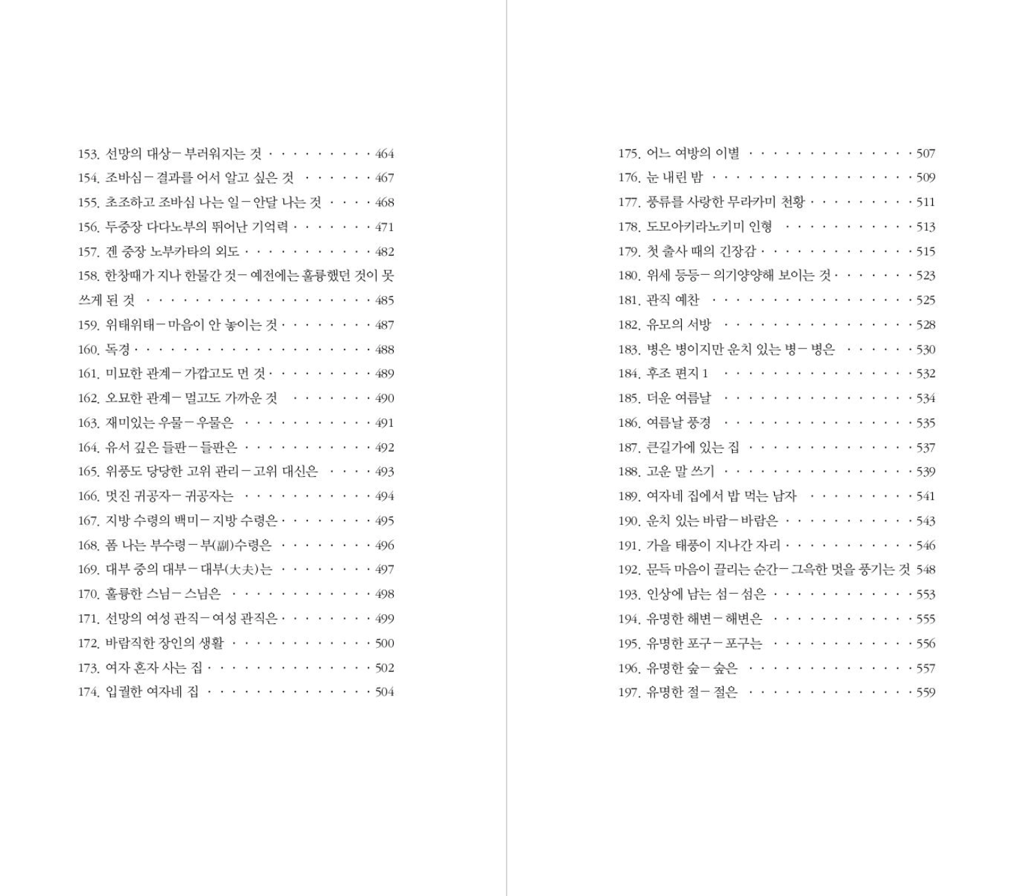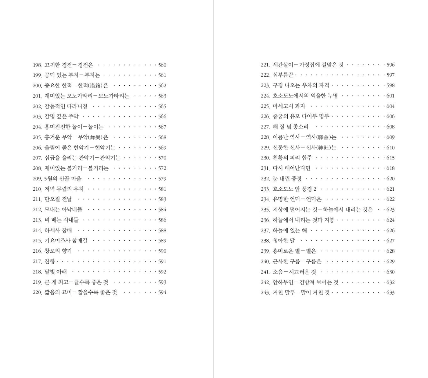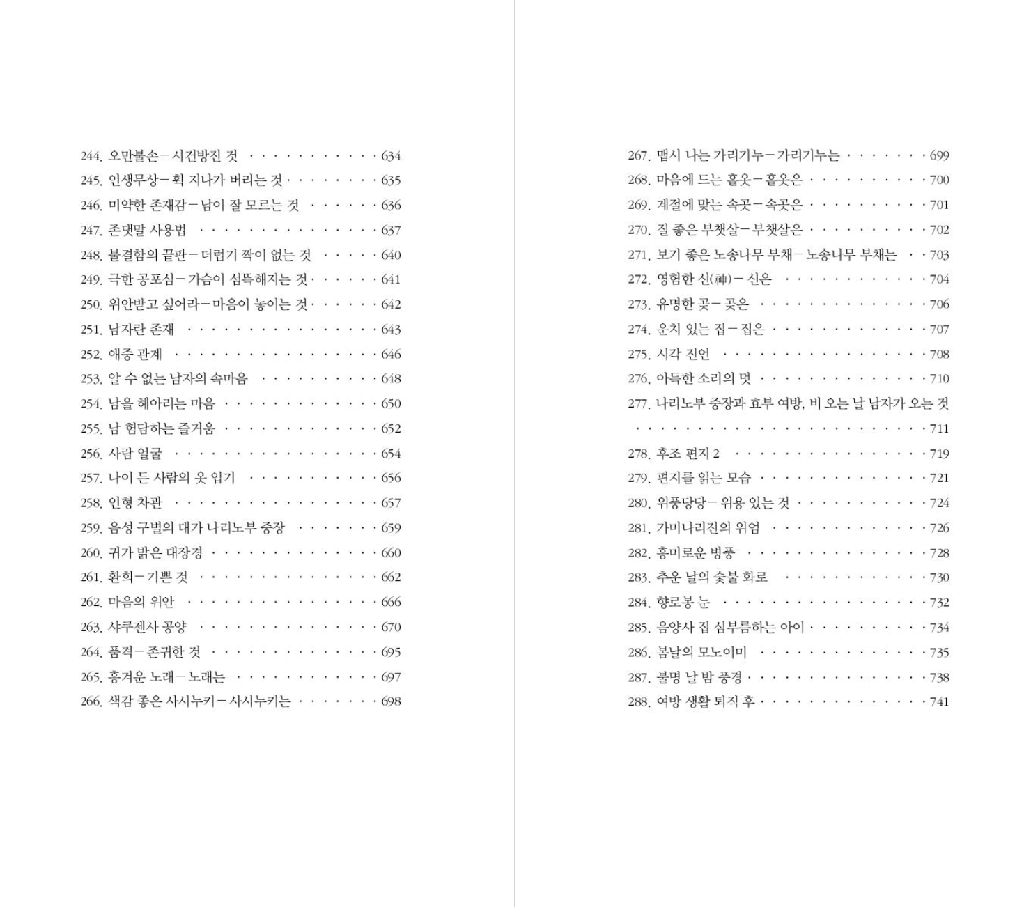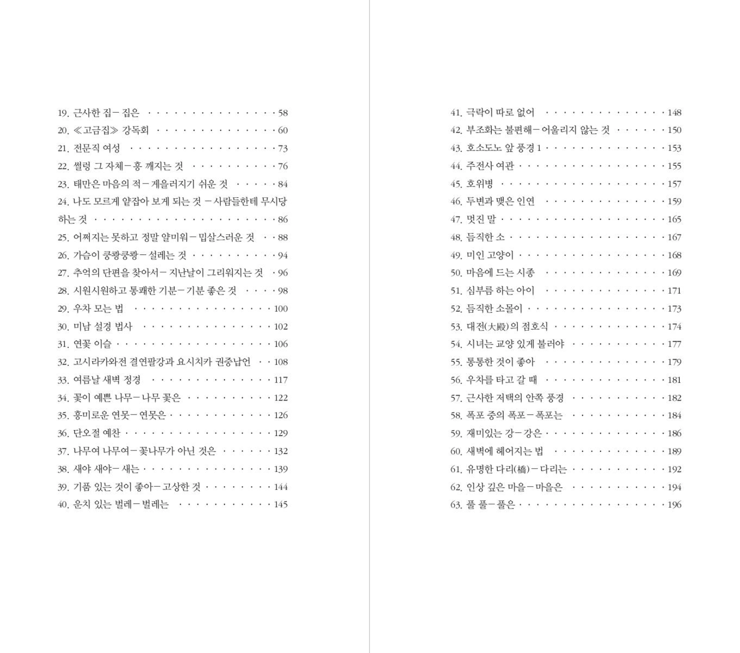 일본 수필 문학의 효시인 ≪마쿠라노소시(枕草子)≫를 완역했다. 세이쇼나곤은 객관적인 시각과 경쾌하고 간결한 문장으로 독창적인 리얼리즘을 낳았다. 헤이안 시대, 화려함의 극치인 궁중 문화와 운치로 가득한 귀족들의 생활 모습을 엿볼 수 있다.
