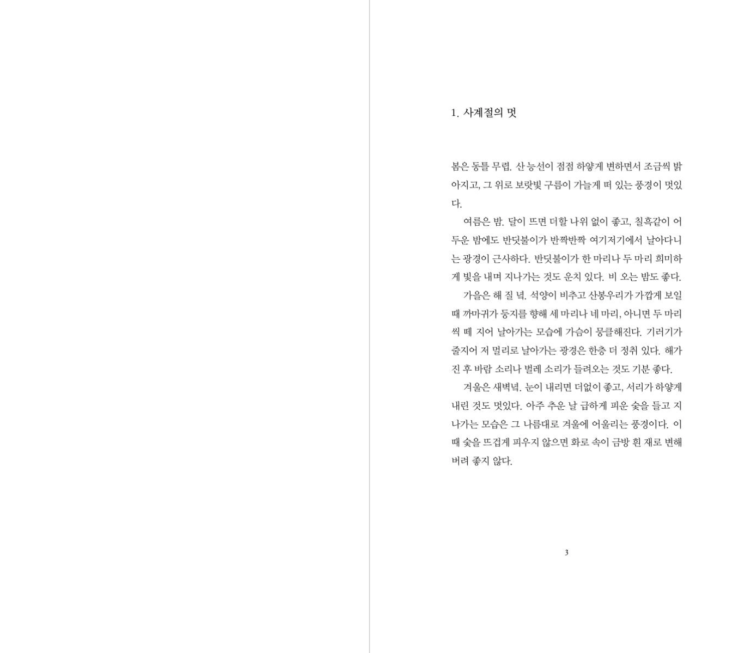 봄은 동틀 무렵. 산 능선이 점점 하얗게 변하면서 조금씩 밝아지고, 그 위로 보랏빛 구름이 가늘게 떠 있는 풍경이 멋있다.