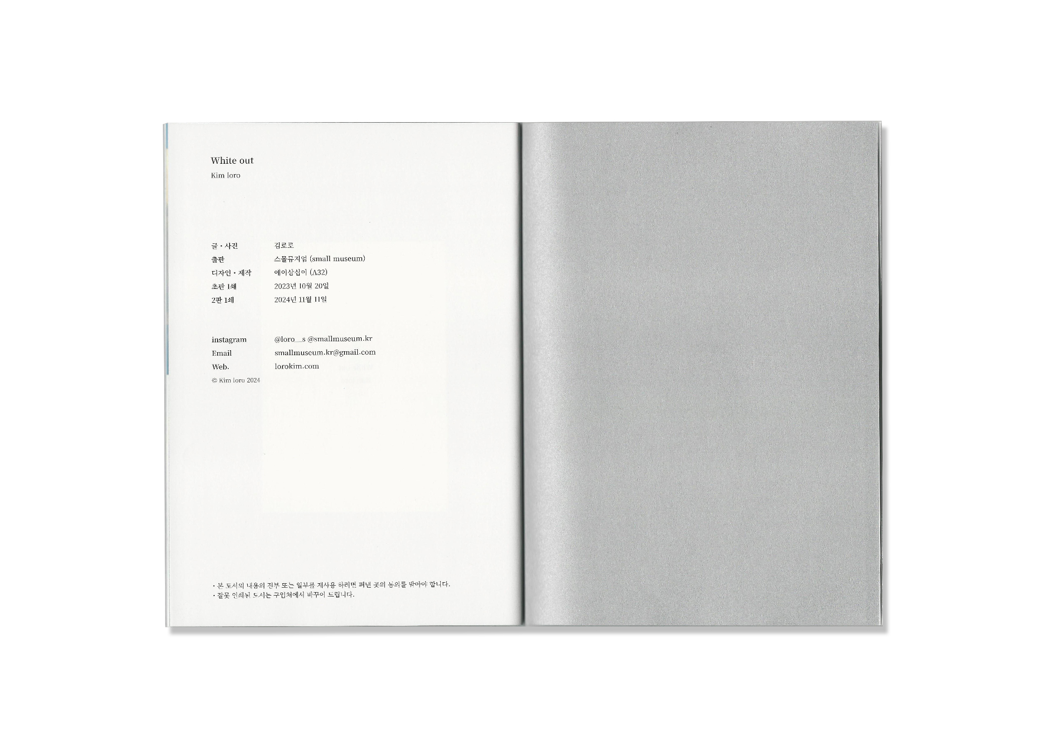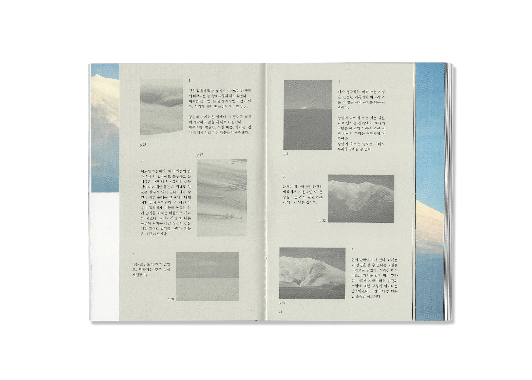 화이트아웃은 눈이 많이 내린 뒤 주변의 모든 것이 하얗게 보이는 현상을 일컫습니다. 또 다른 의미로는 ‘시야 상실'로, 거리와 방 향 감각을 잃은 상테를 말합니다. 종종 사람의 마음에도 화이트아웃이 옵니다. 한 치 앞도 볼 수 없는 어려운 상황이 올때면 눈밭을 보며 위안을 얻었습니다. 언젠가 마음에 화이트아웃 온다면, 이 책을 통해 잠시나마 쉬어 갈 수 있기를 바랍니다.