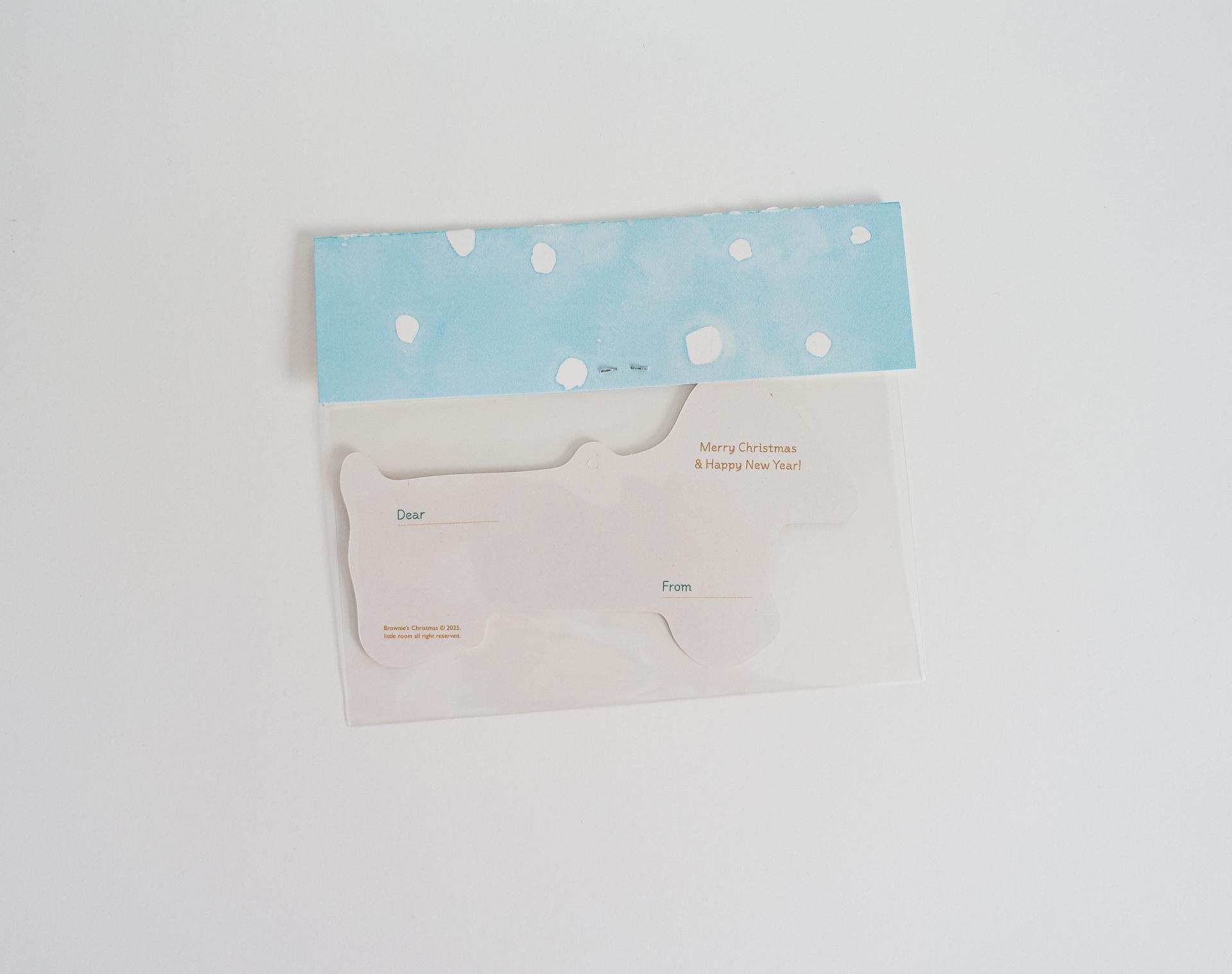 뒷면에는 메시지를 적을 수 있으며, 상단의 작은 홀을 활용해 크리스마스 또는 연말 장식용 오너먼트로 사용할 수 있습니다.