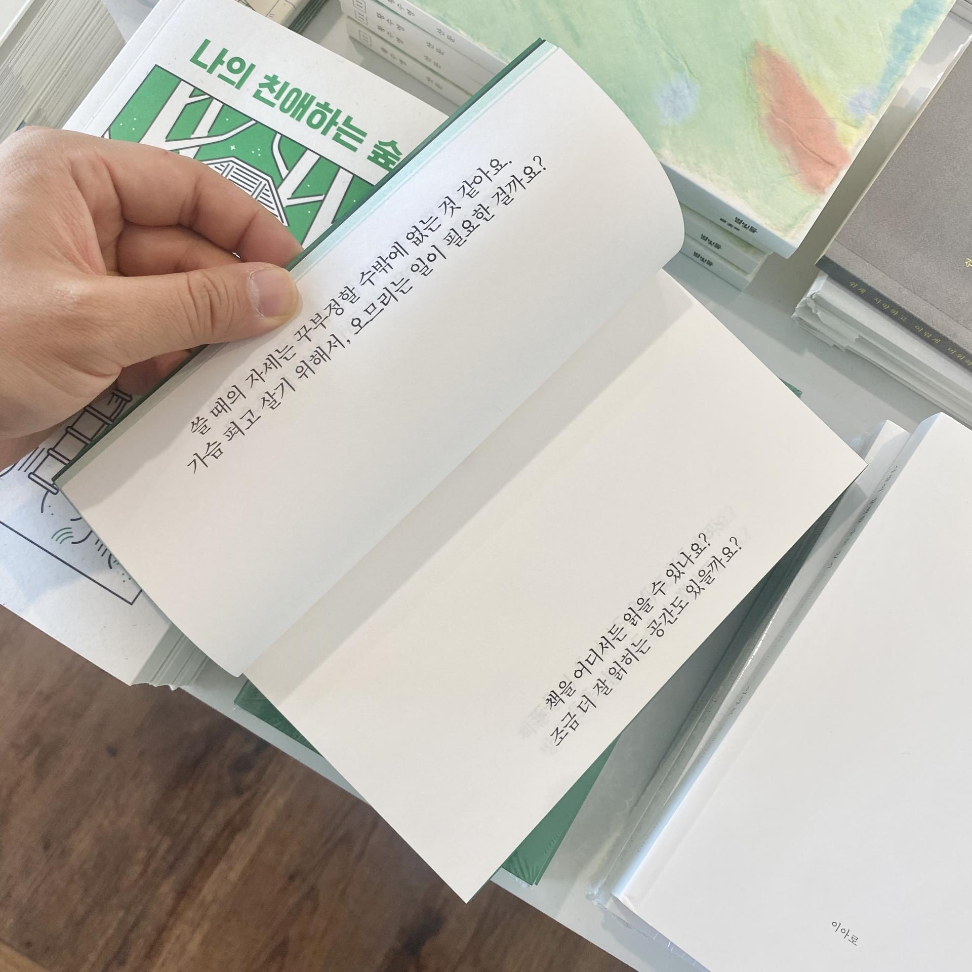 이 책은 제가 <에세이 스탠드>를 진행하며 받았던 질문들에 초록초록 되묻는 책입니다. 쓰기를 시작한 사람은 한 명 한 명이지만 초행길의 질문은 비슷하고 저에게는 그 질문들이 한 풀 한 풀 새싹처럼 다가와서요. '이 새싹들을 모아서 작은 초원을 만들어볼까?'라는 궁리가 책의 시작이었고 저의 바람이었습니다. 투명한 바람이 초원을 쓰다듬으면, 새싹들은 살랑살랑 고개를 움직이잖아요?