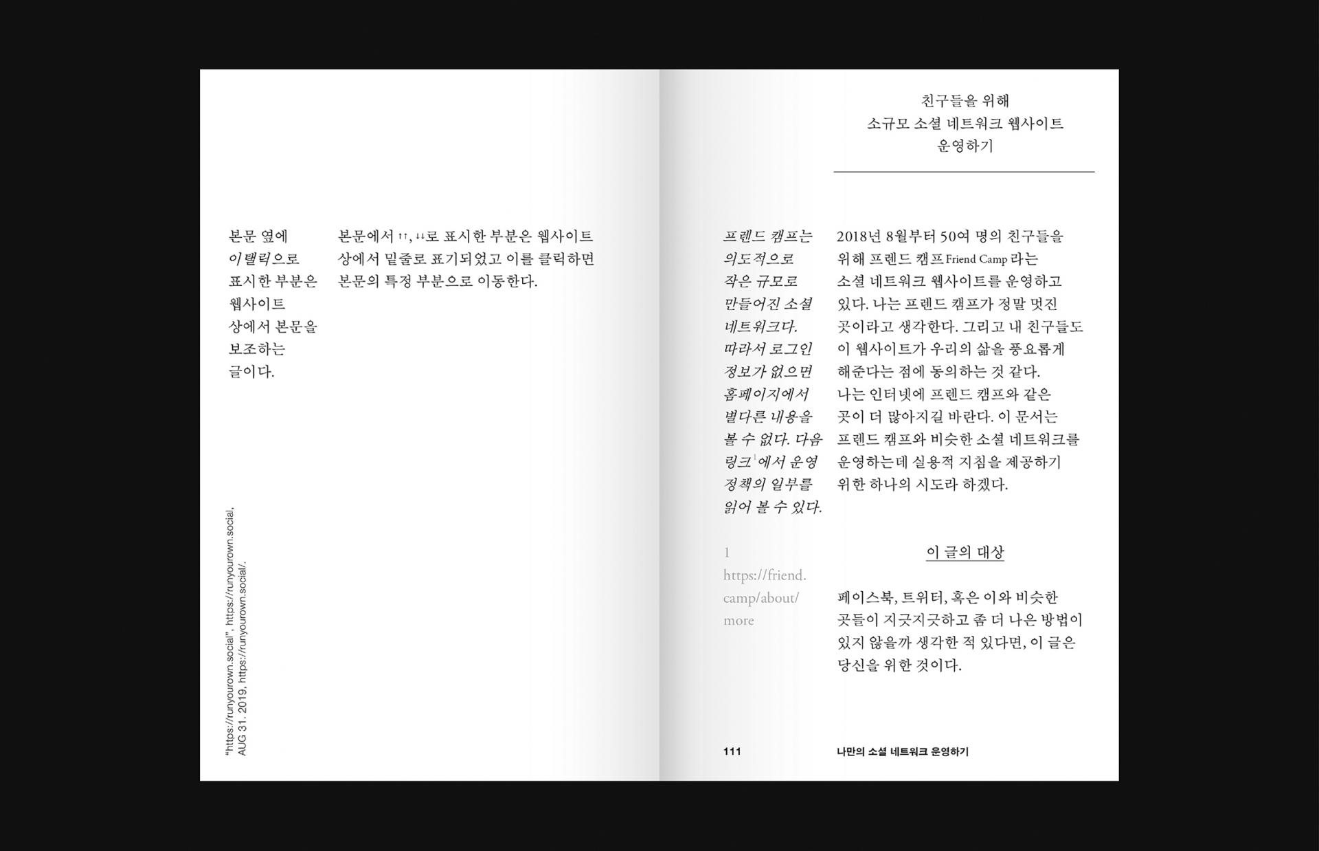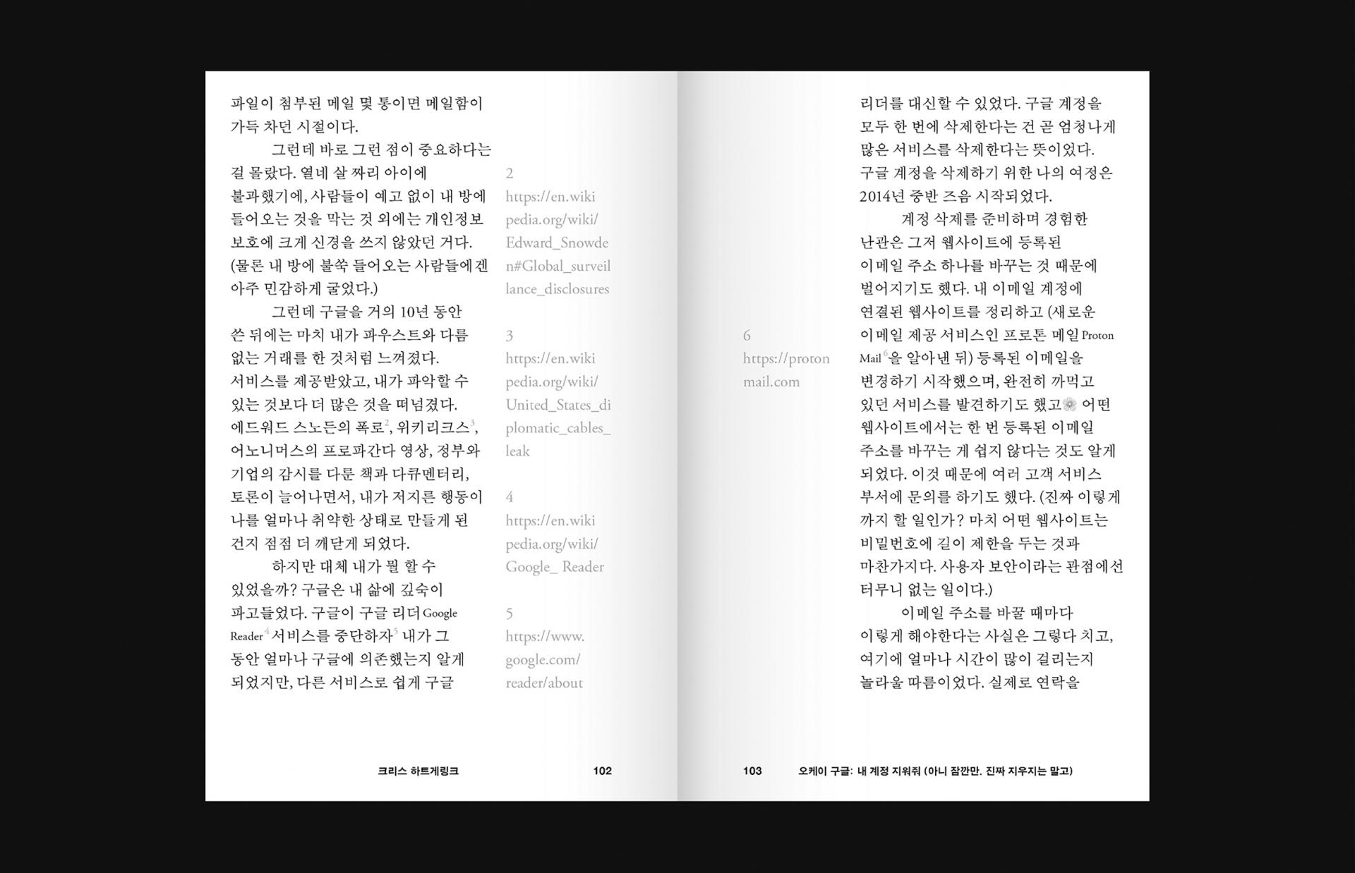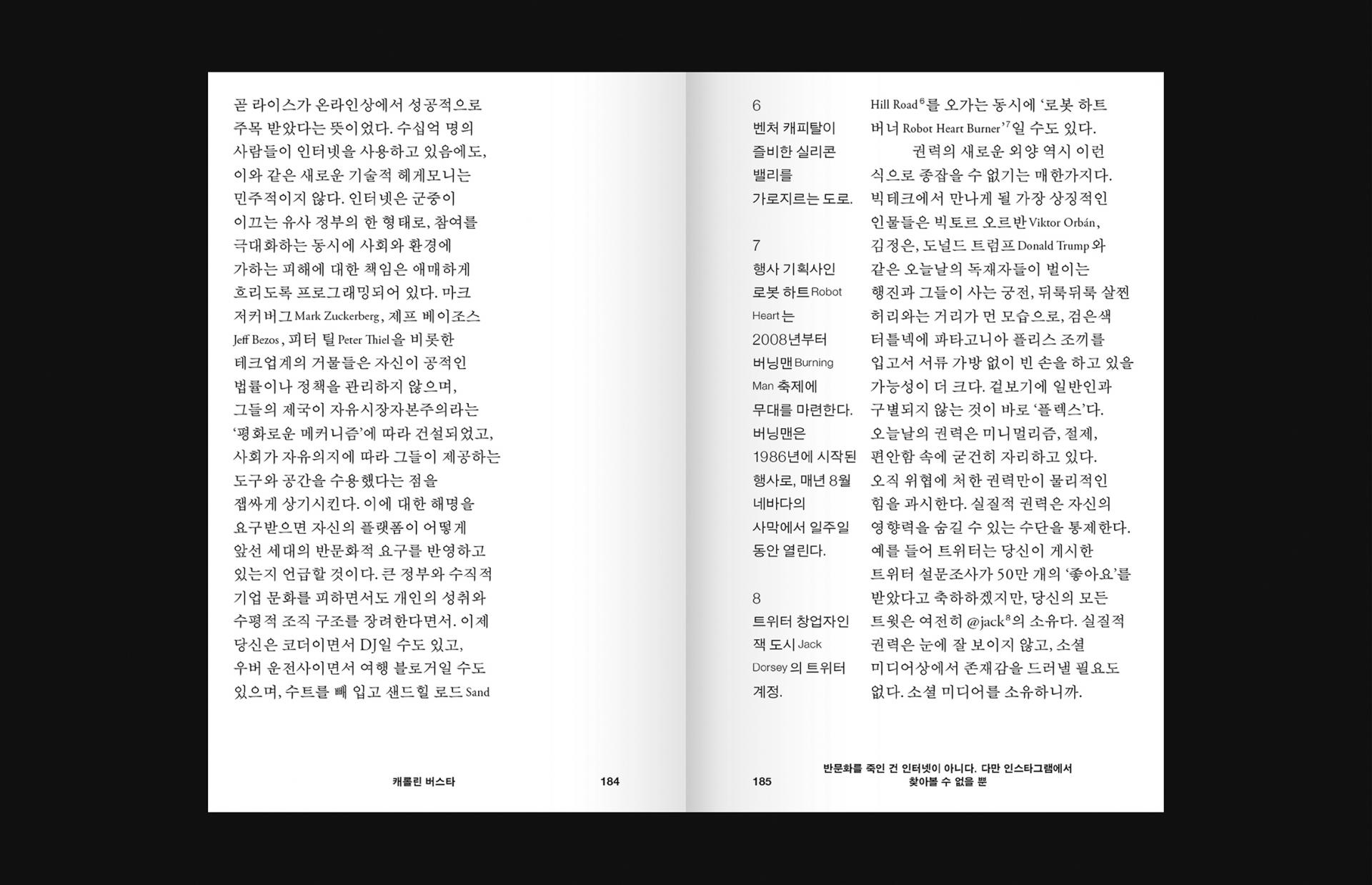 『투명한 장벽, 플랫폼을 배반하기』의 키워드는 ‘사용자 자율성’과 ‘탈플랫폼’입니다. 사용자의 편의를 위해 디자인된 인터페이스가 사용자의 참여를 배제하고 있음을 밝히는 인터렉티브 에세이로 시작하는 책은 거대 기업의 이익 창출 공간이 되어버린 인터넷에서 반문화가 어떻게 가능할지 묻는 질문으로 이어집니다.