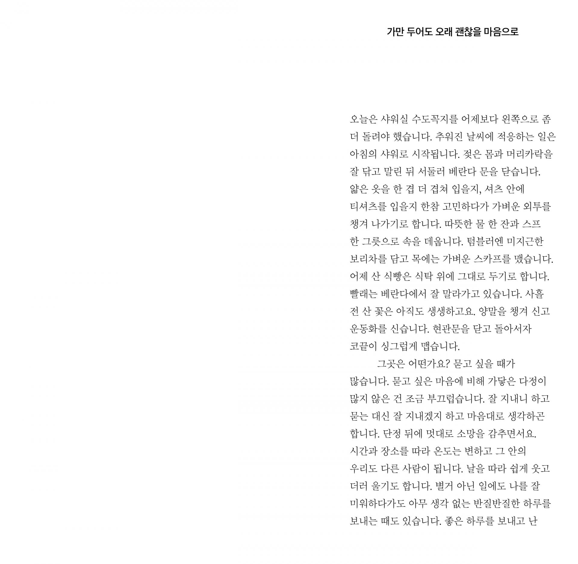 “차갑거나 뜨거운 마음을 상온에 두고 천천히 식힌 다음, 알맞은 온도가 되었을 때 겨우 이렇게 써냅니다.”