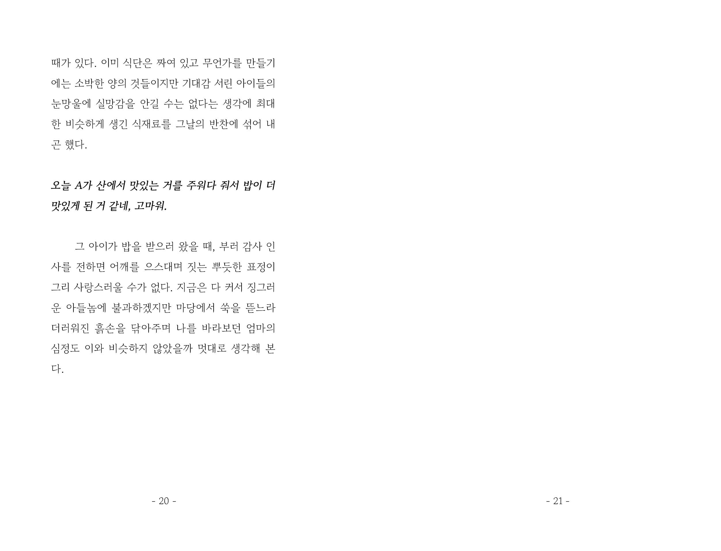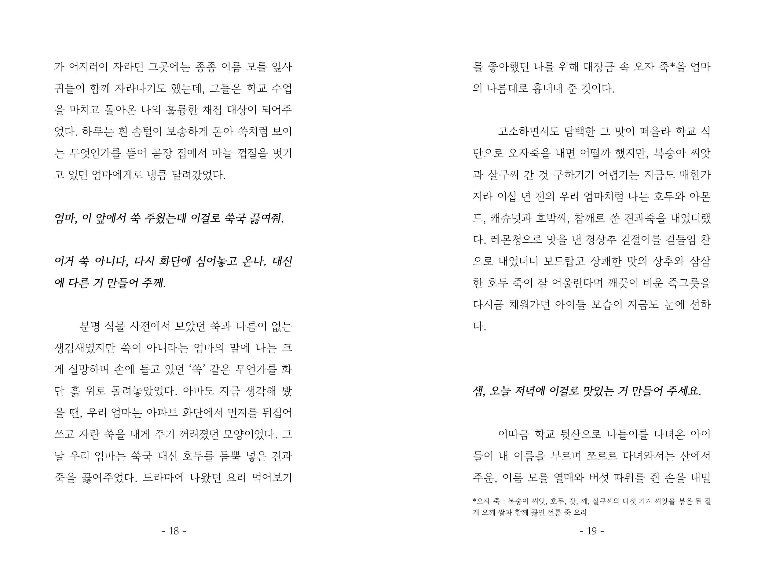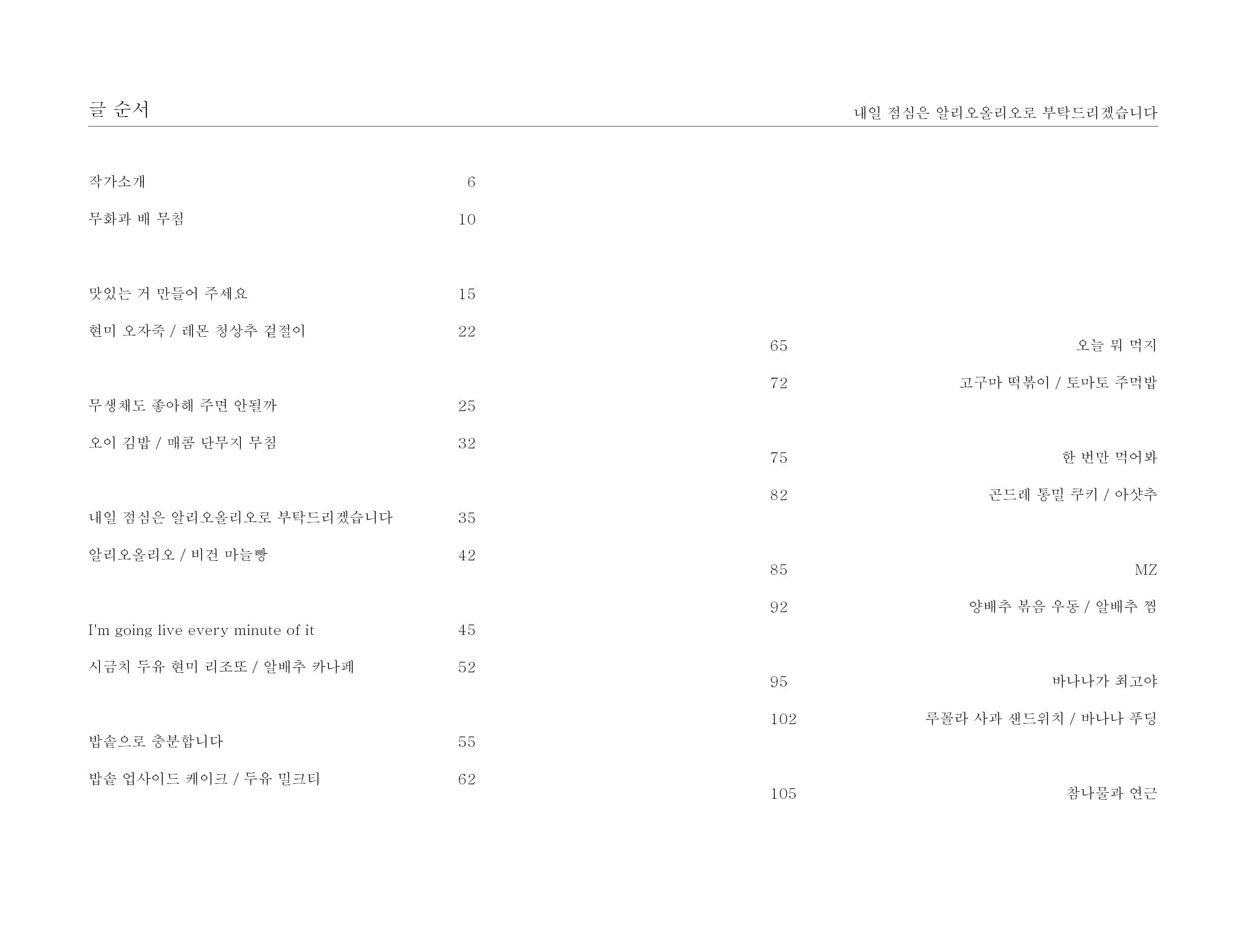 대안학교에서 비건식으로 식단을 꾸리며, 매일 아침 밥을 지으며, 아이들과 부대끼며 겪은 일들과 떠오른 생각들을 엮었습니다. 그것 만으론 모자를까 아이들에게 내었던 비건 요리 만드는 법도 슬쩍 곁들여내었고요. 이 책을 읽으며 채식은 풀만 먹는 것이라는 생각을 한 겹 덜어낼 수 있다면 좋겠습니다.