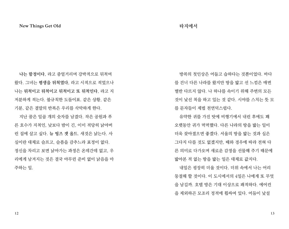 종교는 사랑. 나 자신이 되기 위해 쓴다. 단어가 지닌 힘을 믿는다. 문장 속에서 나의 파편을 모은다. 같은 속도로 걷는다. 『사랑의 몽타주』, 『무엇인지 무엇이었는지 무엇일 수 있는지』, 『아무도 없는 바다』, 『영원에 무늬가 있다면』을 1인 출판했고, 『Poetic Paper 01』, 『당신의 글은 어떻게 시작되었나요』에 참여했다. 보다 건강한 사람이 되고 싶다. 단편소설과 가사를 쓰고 싶다.