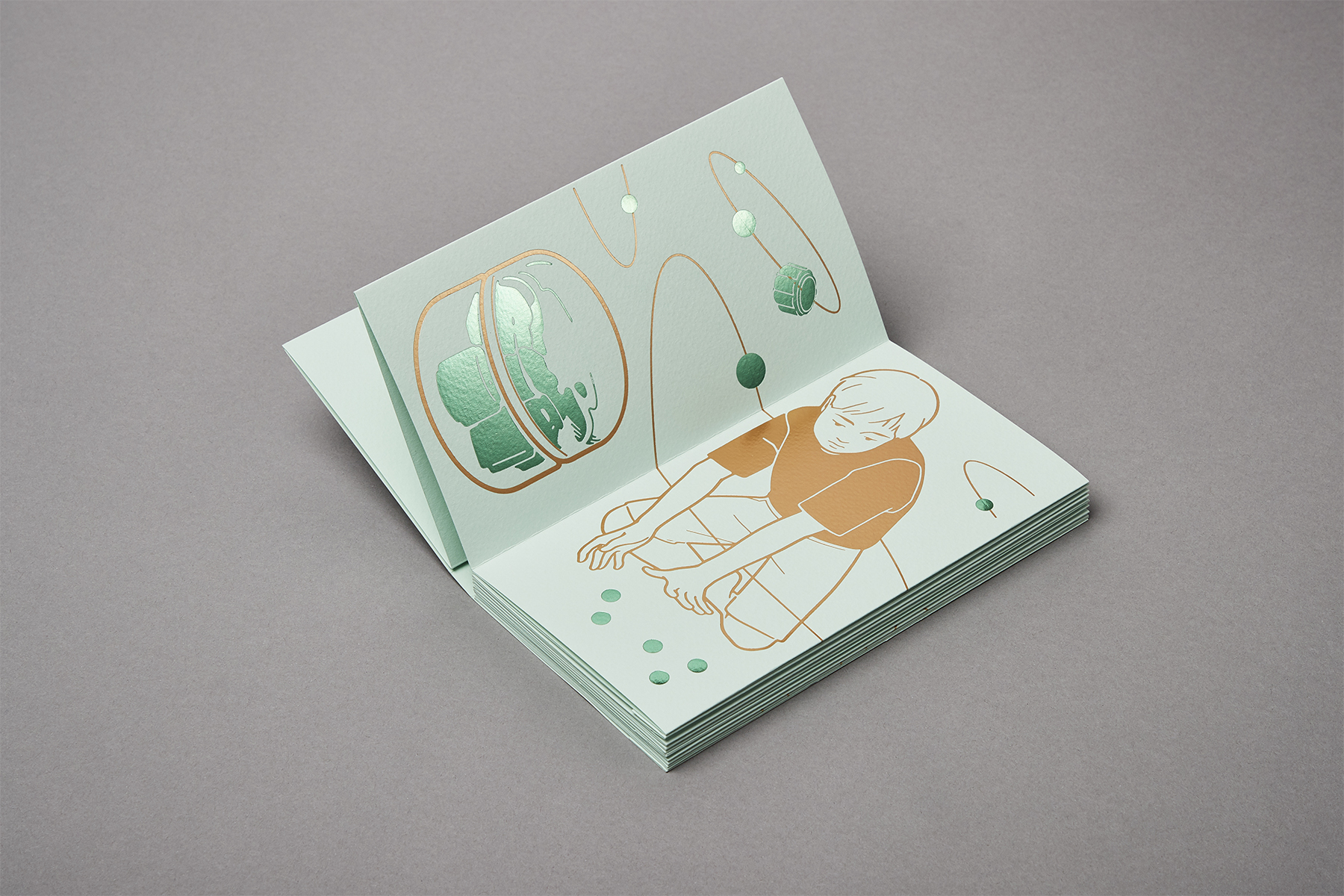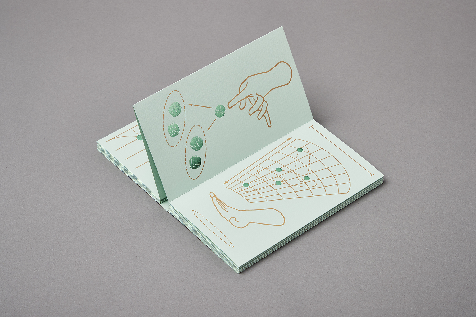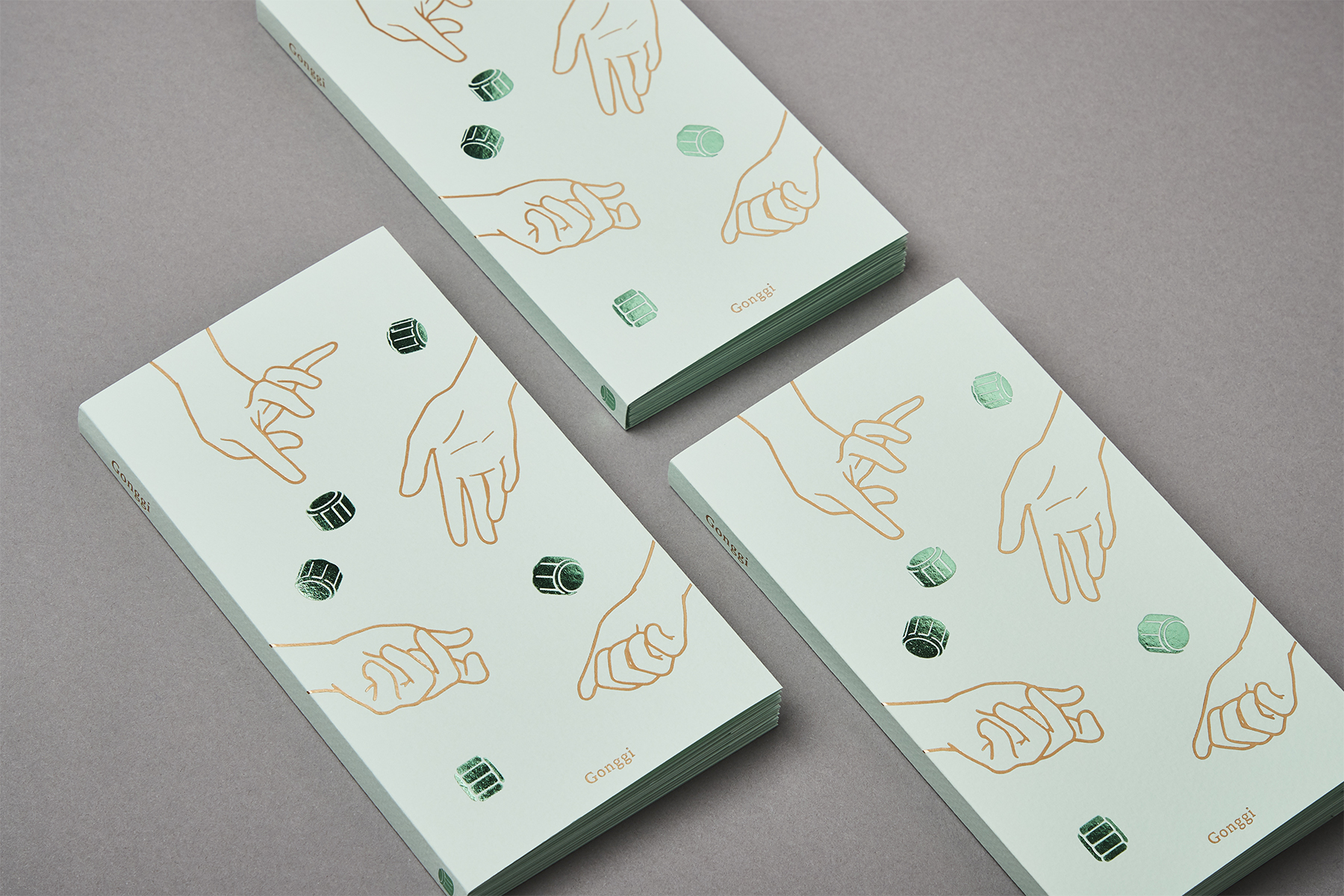 『Gonggi』는 ‘Add to cart’의 놀이시리즈 중 첫 번째 책으로 손과 공깃돌의 움직임을 부각한 드로잉을 박으로 인쇄한 아코디언북입니다. 다섯 개의 공깃돌만 있으면 장소에 구애받지 않고 혼자 혹은 여럿이 행할 수 있는 공기놀이의 경쾌한 장면들을 그렸습니다.