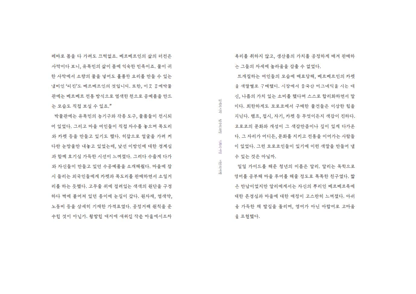 [궁금해, 너란 여행]은 ‘어디로 떠날까’보다 ‘어떻게 여행할까?’ 건강한 고민을 하는 공정여행 에세이입니다. 공정여행기획자로서 직접 보고, 쓰고, 그린 지극히 주관적인 여행 이야기를 담았습니다. 여행 자체가 힘든 요즘이지만, 여행의 헛헛한 마음을 살포시 달래 주길 바랍니다. 무엇보다도 포스트 코로나 시대에 내일의 지구를 위해 좀 더 건강하게 여행하는 방법을 찾아보는 책이기도 합니다.