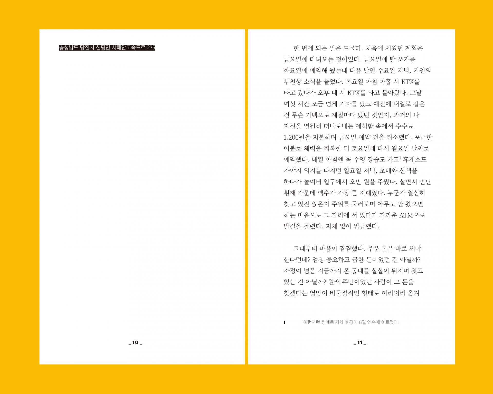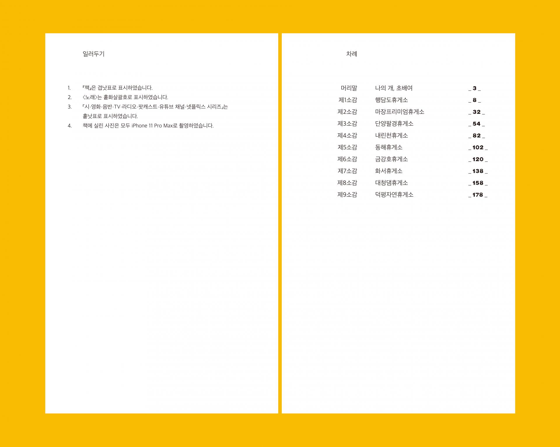 『휴게소감』은 반려견과 함께 나서는 휴게소 방문기입니다. 예민하고 사회성이 없다는 공통점을 지닌 보호자와 반려견이 모두들 잠시 들렀다 금방 떠나는 고속도로의 외딴섬을 목적지로 설정하여 거기까지 가느라 걸린 시간만큼 오래도록 머물러 보고, 사람 혼자 또는 사람끼리 다닐 때는 미처 몰랐던 점들을 하나씩 찾아봅니다.