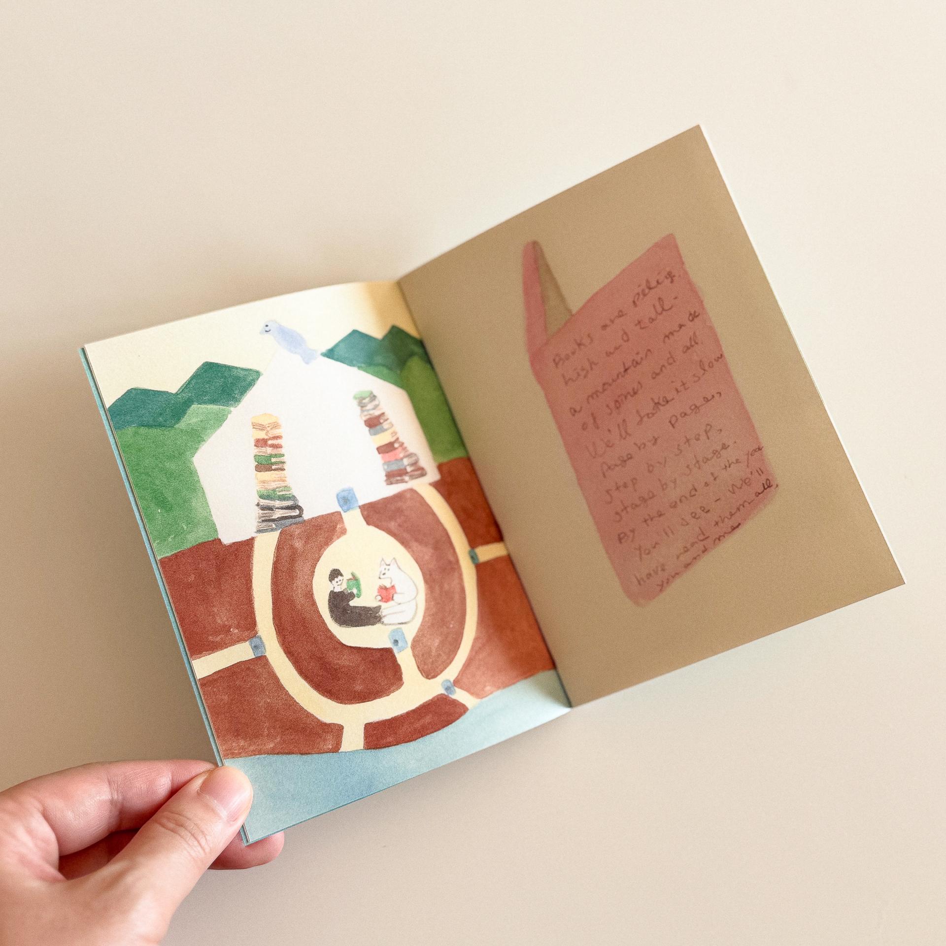 너무 많은 책을 어떻게 해결해야 할지 고민하는 이야기를 그렸습니다. 승연 작가님이 2인전을 제안했을 때 무엇을 그려낼까 잠시 멈추어 곁을 돌아보았습니다. 그 순간, 사놓고 읽지 않은 책들이 서서히 집 안을 점령해 가고 있다는 사실을 깨달았습니다. 그 고민에서 비롯된 이야기는 토베와 나로부터 시작되어 파란 고양이와 숲속 요정, 책을 읽는 새들을 상상하게 했습니다. 그림 한 장이 문장을 불러내고, 문장은 또 다른 상상을 이끌며 서서히 하나의 이야기로 자라났습니다. 책은 우리를 이어 줍니다. 그리고 이 전시가 또 다른 연결의 지점이 되기를 바랍니다. 올해 안에 ‘너무 많은 책들’을 다 읽을 수 있을까요…? 오늘도 토베와 나는 열심히 책을 읽고 있습니다.