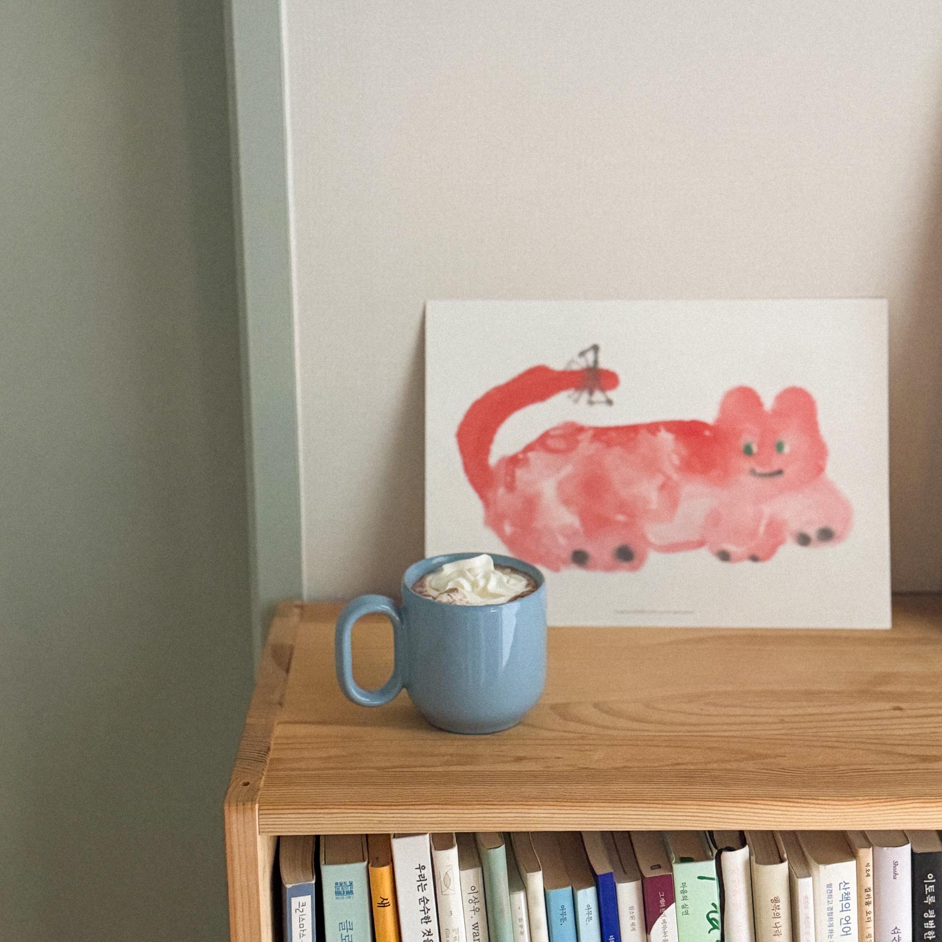 토마토를 닮은 빨간 고양이를 그린 포스터입니다.