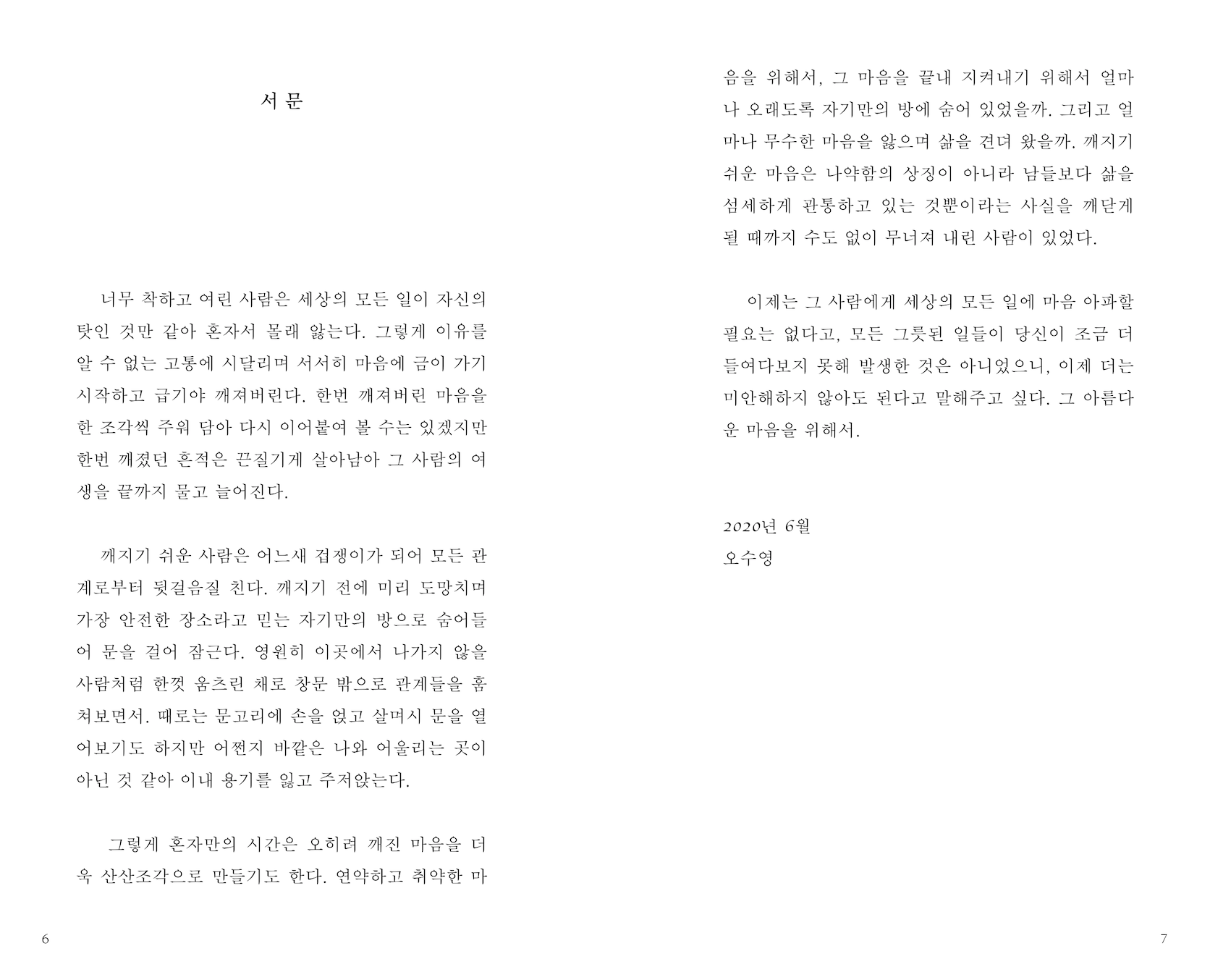『깨지기 쉬운 마음을 위해서』는 독립적으로 자유롭게 문학 활동을 하는 오수영 작가의 2년 만의 신작이자, 그의 세계를 대변할 오롯한 증거다.