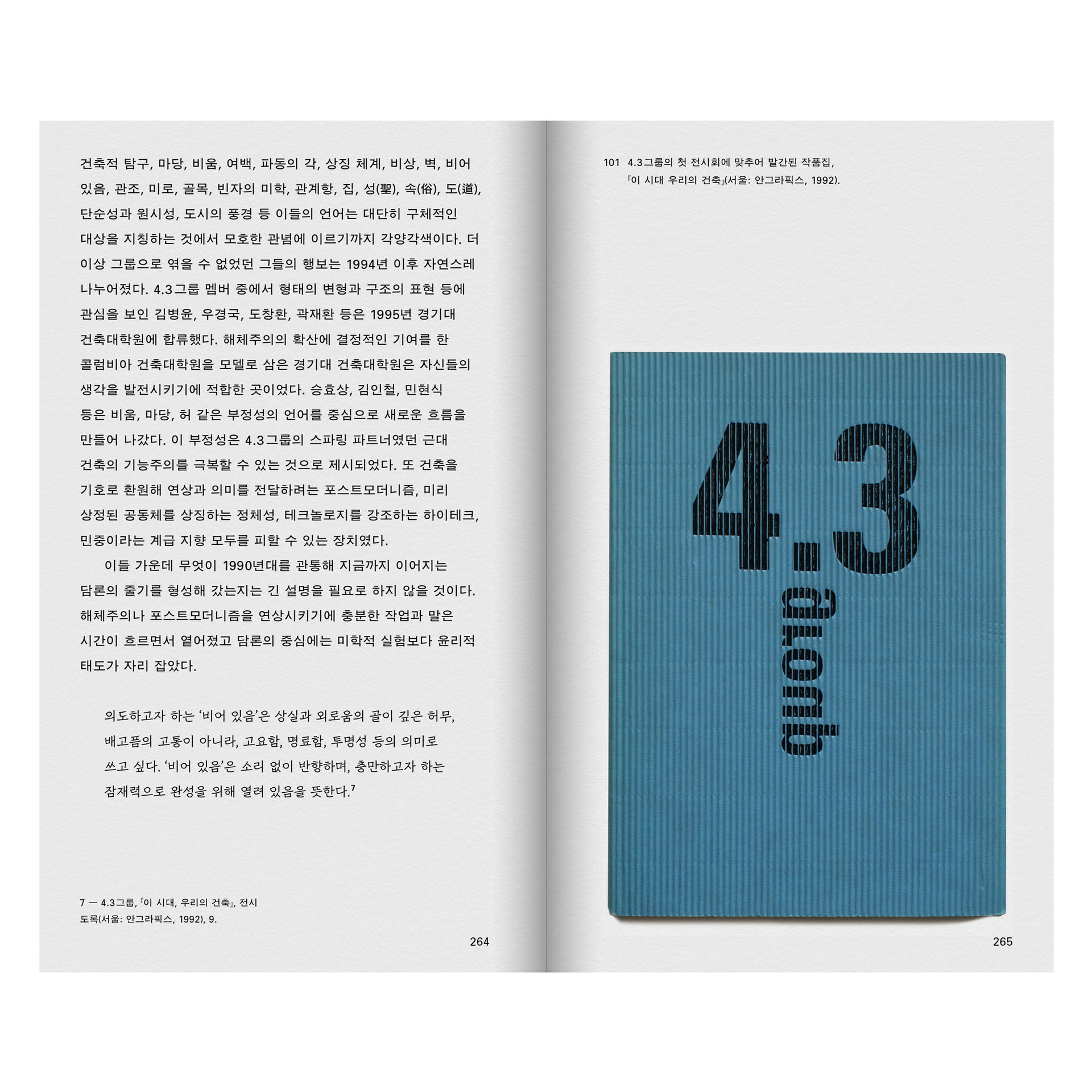 무엇보다 이 시기 최대 건축주였던 국가의 존재를 전면에 드러내고, 그 속에서 한국 현대 건축의 생산과 재현을 이야기한다. 이 자취야말로 20세기 한국 현대 건축의 역사를 쓰기 위한 중요한 단서다.