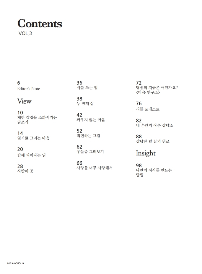 매거진 멜랑콜리아 MELANCHOLIA 3호 '치유하는 예술'