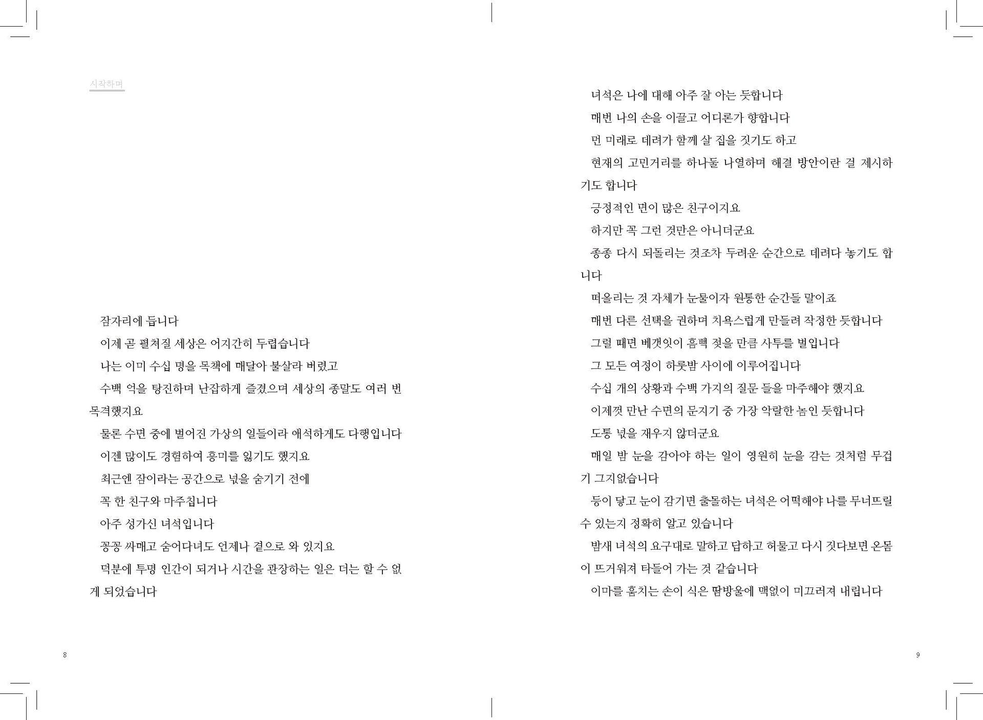 내가 뱉은 말을 따라 돌진하는 경주마라도 된 것처럼 말이죠” (76p)백야처럼 휘황찬란한 나의 밤은 증발한 지난 십 년을 되짚어가기 딱 좋은 등불이 되어 주었죠