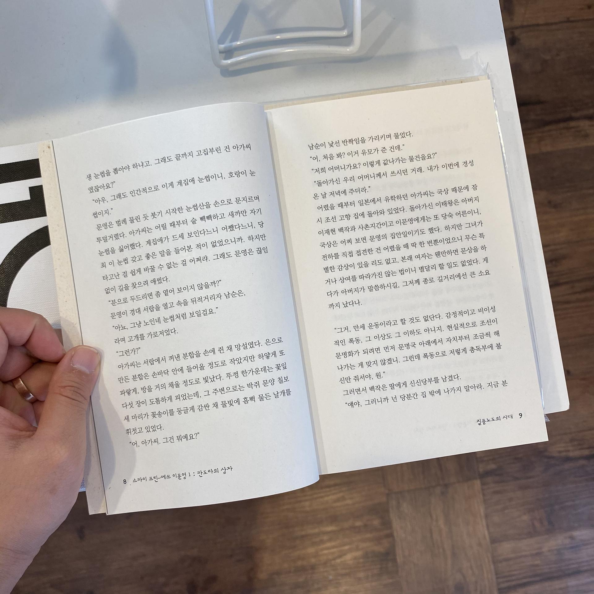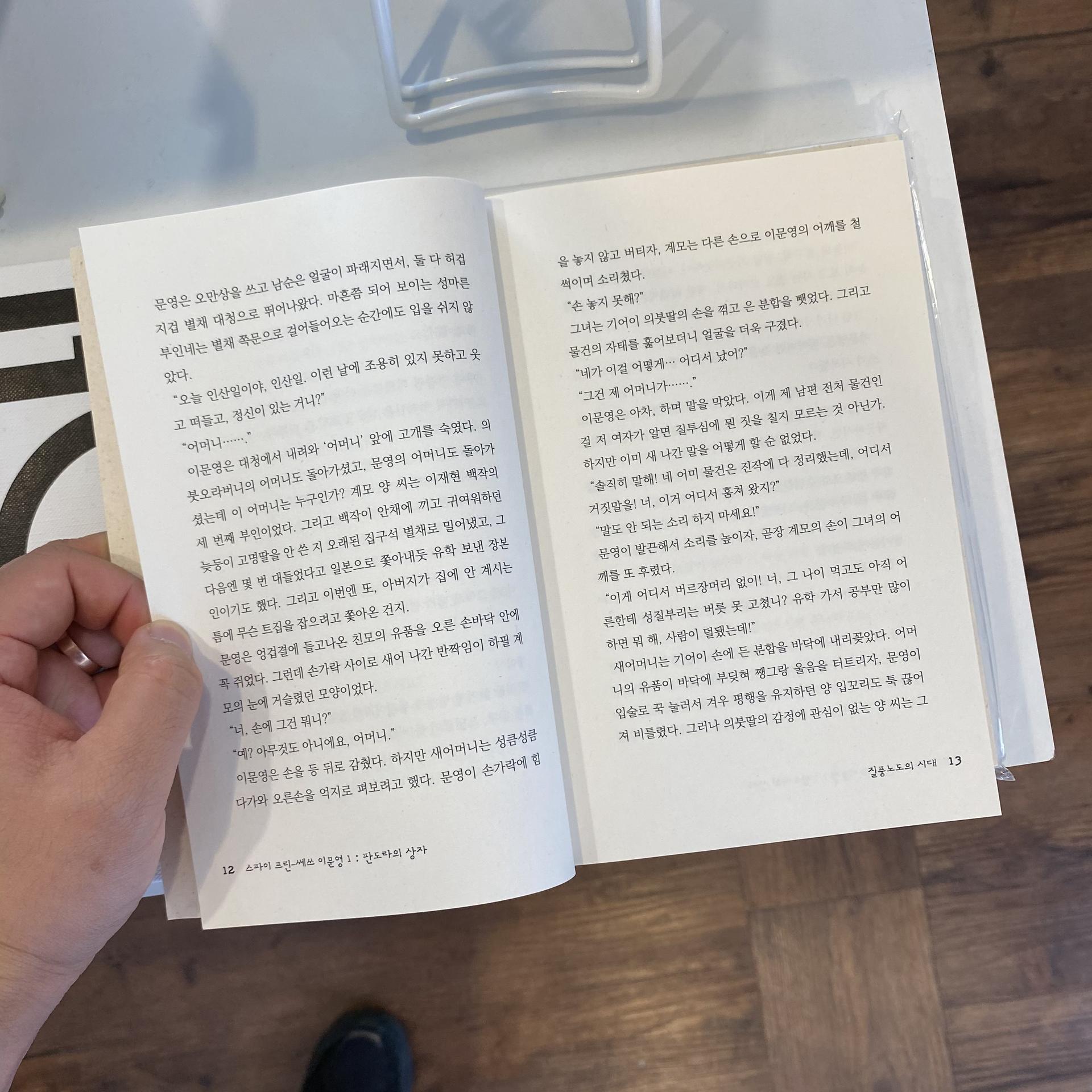 주인공 이문영도 사정은 크게 다르지 않습니다. 물론 보통 사람들보다는 훨씬 유복한 환경을 누리고 있긴 하지만 대신 그 시절에 여성이었던 탓에 사회적 활동 상의 제약을 크게 받고 있지요. 게다가 소싯적 큰 실패의 기억 탓에 그녀 스스로도 경계에서 나오지 않고 그저 가만히 무탈한 하루만을 꾀할 뿐. 하지만 어느 날 끽다점(다방)에서 우연히 바뀐 가방이 문영을 의외의 사태로 끌어당기면서, 이문영은 인생의 변곡점이 담긴 자신의 ‘판도라의 상자’에 손을 대게 됩니다. 그리하여 스파이 프린-쎄쓰 비긴즈.