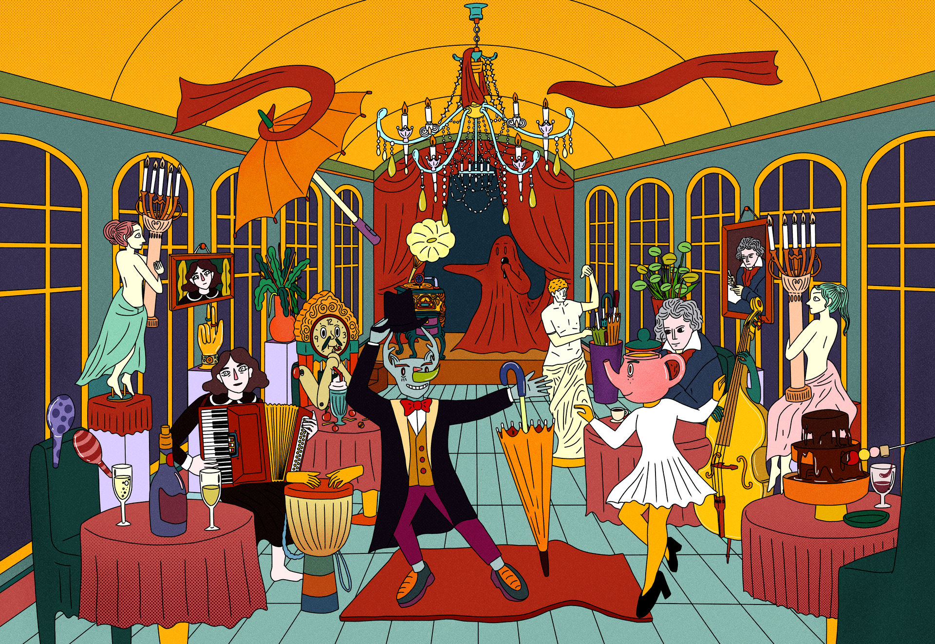 공연보다 확장된 초현실주의적 상상과 공연을 보는듯한 감성, 그리고 공연에 숨겨진 복선은 책의 작화를 통해서 찾을 수 있도록 많은 정성을 기울였습니다. 컨템포러리한 작화와 채색, 독창적인 캐릭터, 초현실주의적 세계관이 유기적으로 연결되어 있습니다.