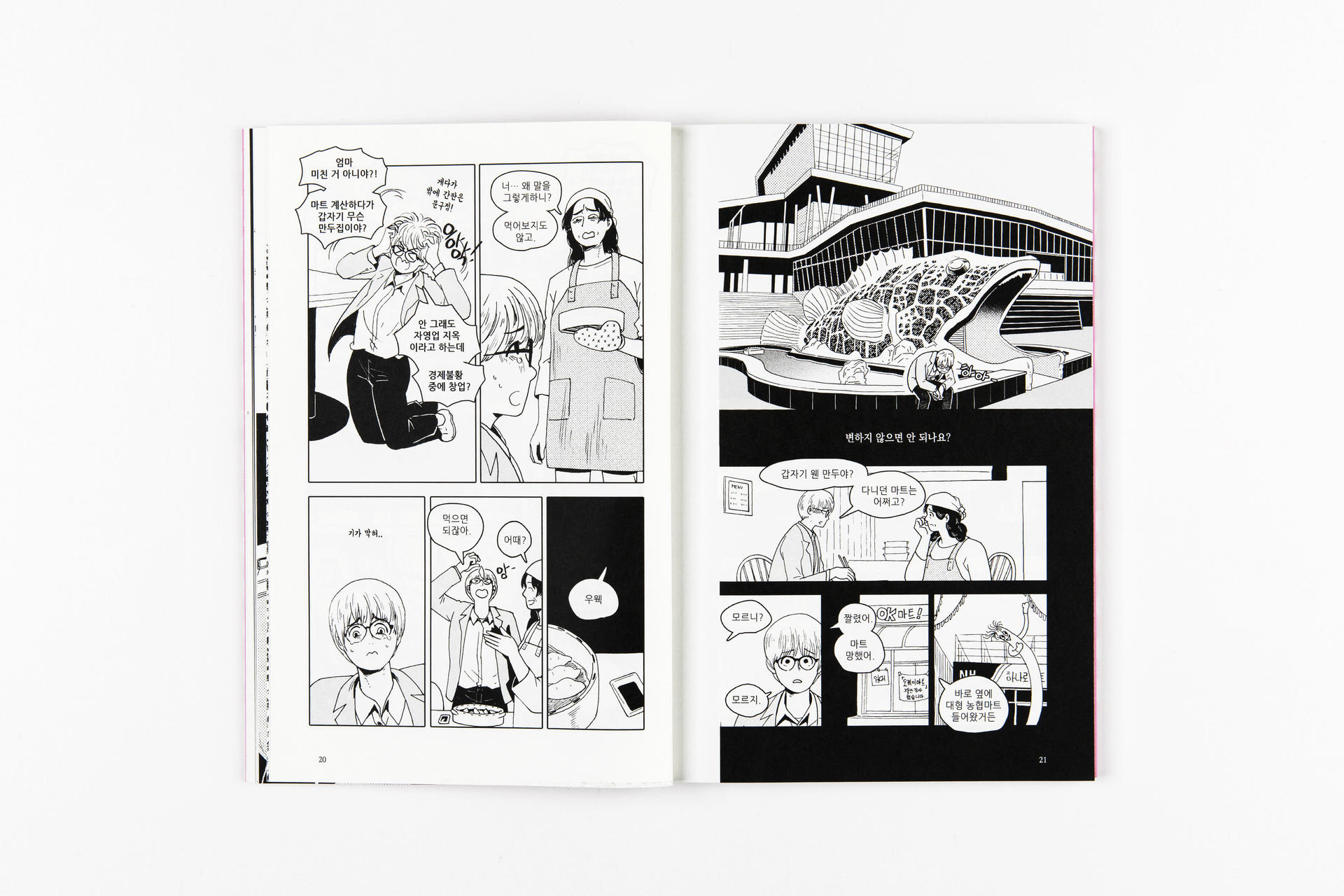 2017년 <오늘 하루도 무사히>로 데뷔한 고형주 작가님은 나른한 일상의 이야기부터 강렬하고 섬찟한 이야기까지 극과 극을 오가는 만화작업으로 많은 사람들에게 강한 인상을 남겼습니다. 2020년 미국 출판사 아이언서커스코믹스와 협업한 그래픽 노블 <비밀독서동아리>가 한국에 출간되었습니다. 충북 충주는 고형주 작가님이 3년 동안 거주했던 지역입니다.