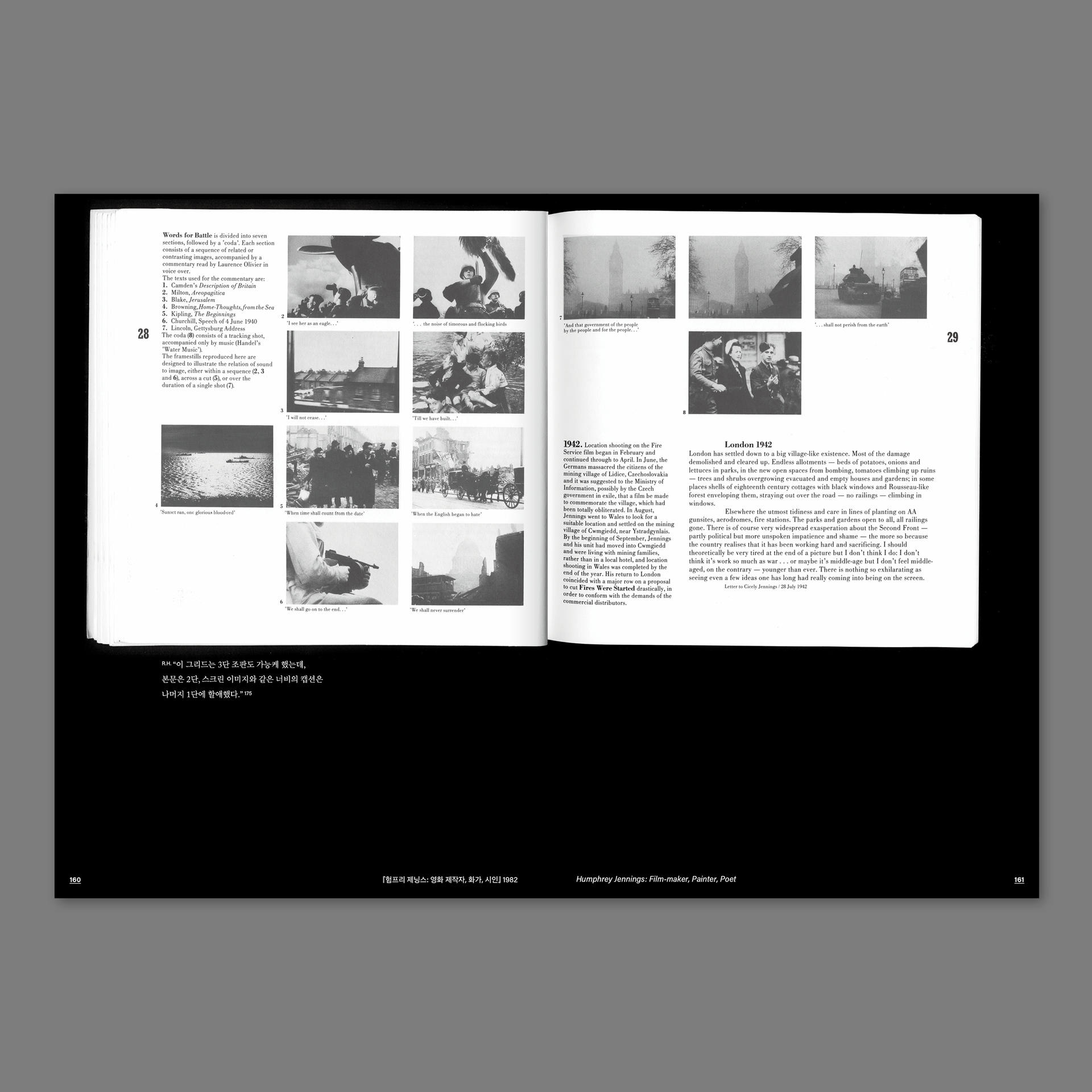 두 편의 글이 대상으로 삼고 있는 것은 홀리스가 디자인한 네 종의 책 『다른 방식으로 보기Ways of Seeing』 (1972), 『제7의 인간A Seventh Man』(1975), 『고다르: 이미지, 사운드, 정치Godard: Images, Sounds, Politics』(1980) 그리고 『험프리 제닝스: 영화 제작자, 화가, 시인Humphrey Jennings: Film-maker, Painter, Poet』(1982)이다. 앞의 두 책은 존 버저(John Berger)의 책으로서 국내에서는 각각 열화당과 눈빛에서 발행했고, 나머지 두 권은 번역되지 않았다. 논의의 대상이 되는 책이 디자인적 관점에서 충분히 관찰되고 음미되길 바라는 뜻에서 여러 본문 내지를 스캔했으며, 『험프리 제닝스: 영화 제작자, 화가, 시인』을 제외한 나머지 책들은 모두 실제 크기로 재현했다.