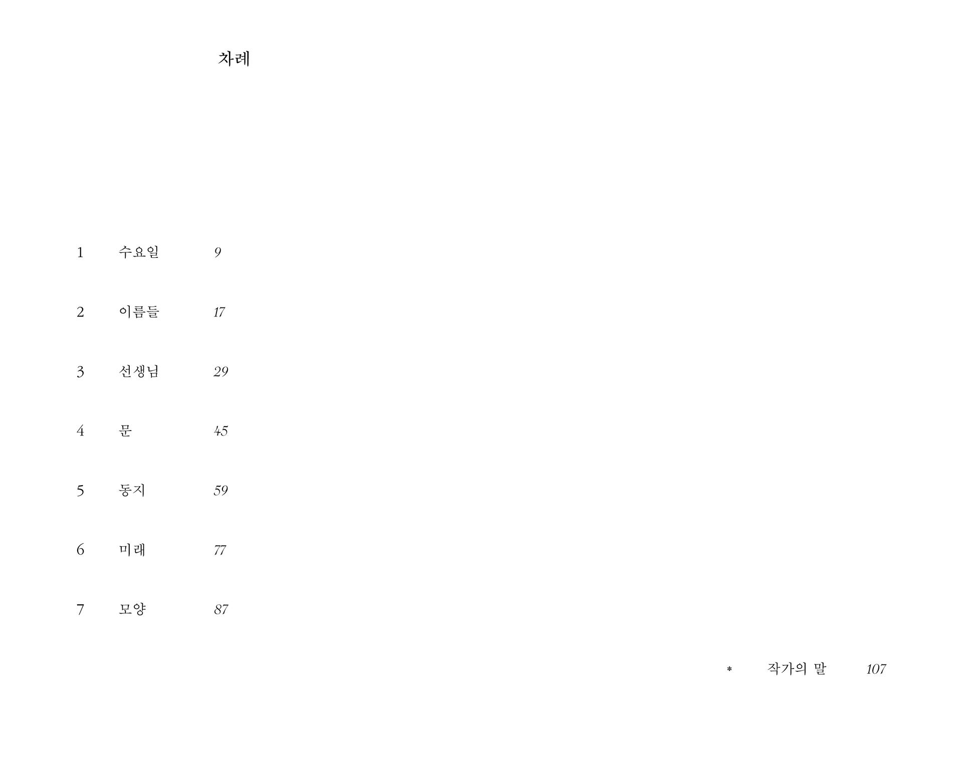 민수 선생님은 도통 알아차리기 힘든 사람이었다. 최소한의 말만 하고 최소한의 소리를 내는 사람. 최소한의 소시를 내기 위해 최소한으로 움직이는 사람. 최소한의 반경내에서만 알아차릴 수 있는 사람. 희미한 색의 옷을 입고 희미하게 웃는 사람.(p.33)