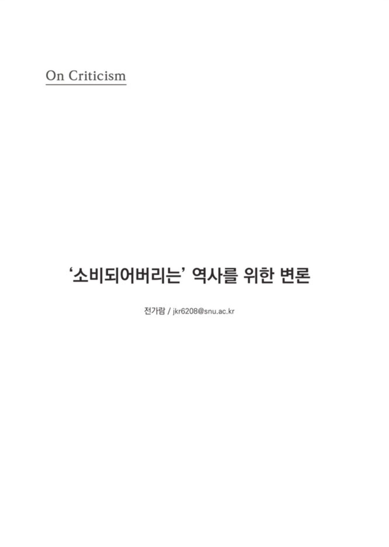 ‘소비되어버리는’ 역사를 위한 변론 - 전가람