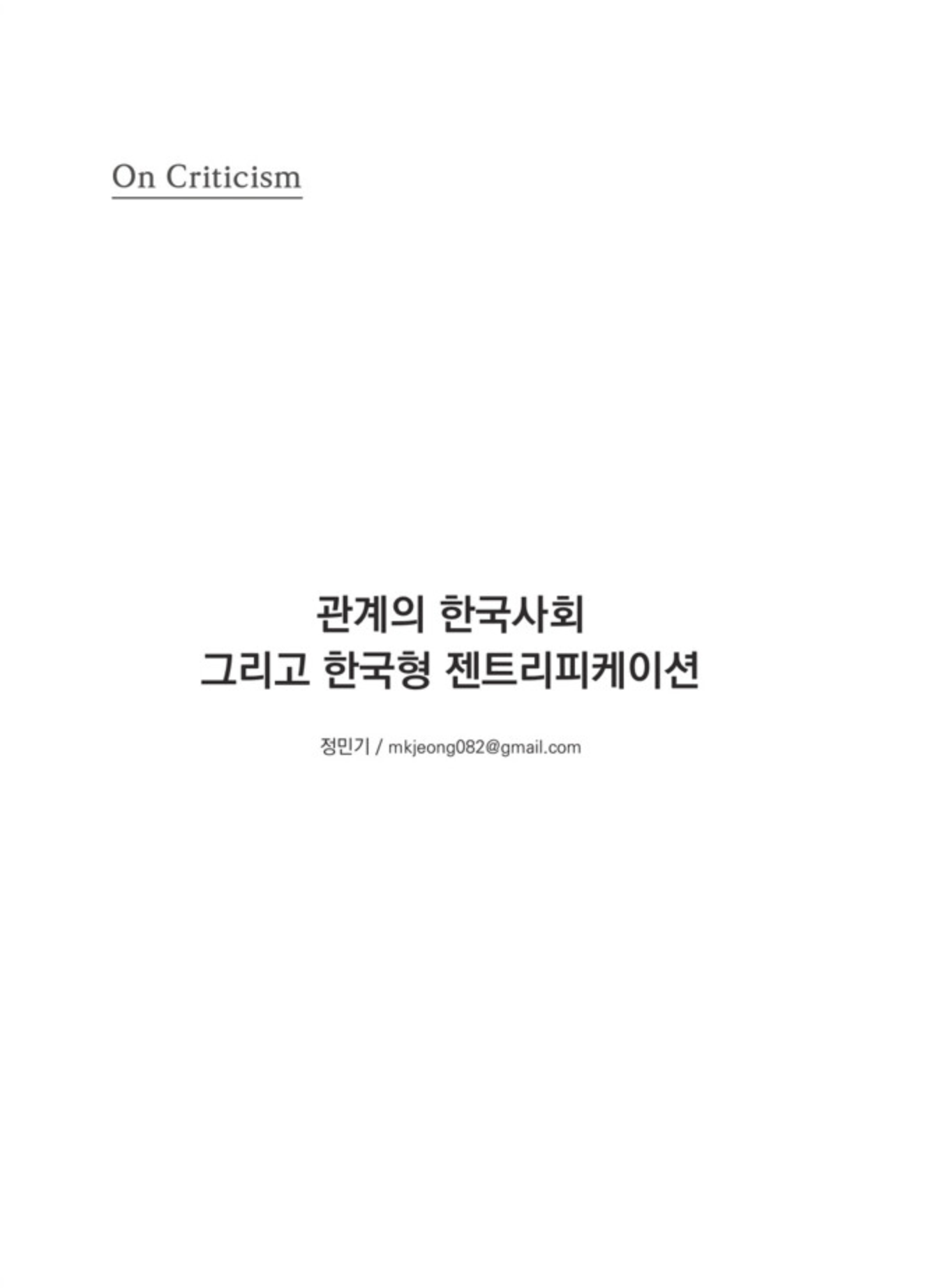 관계의 한국사회 그리고 한국형 젠트리피케이션 - 정민기