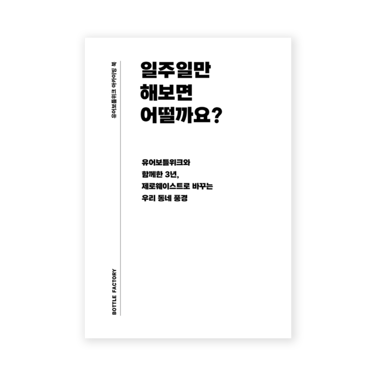 일회용품 없는 일상을 제안하는 책, 『일주일만 해보면 어떨까요?』가 출간됐다. 이 책은 보틀팩토리가 2018년부터 커뮤니티 안에서 제로웨이스트 문화를 공유하는 행사인 ‘유어보틀위크’를 진행해오며 목격한 연희동 가게와 주민의 라이프 스타일 변화의 기록이다.