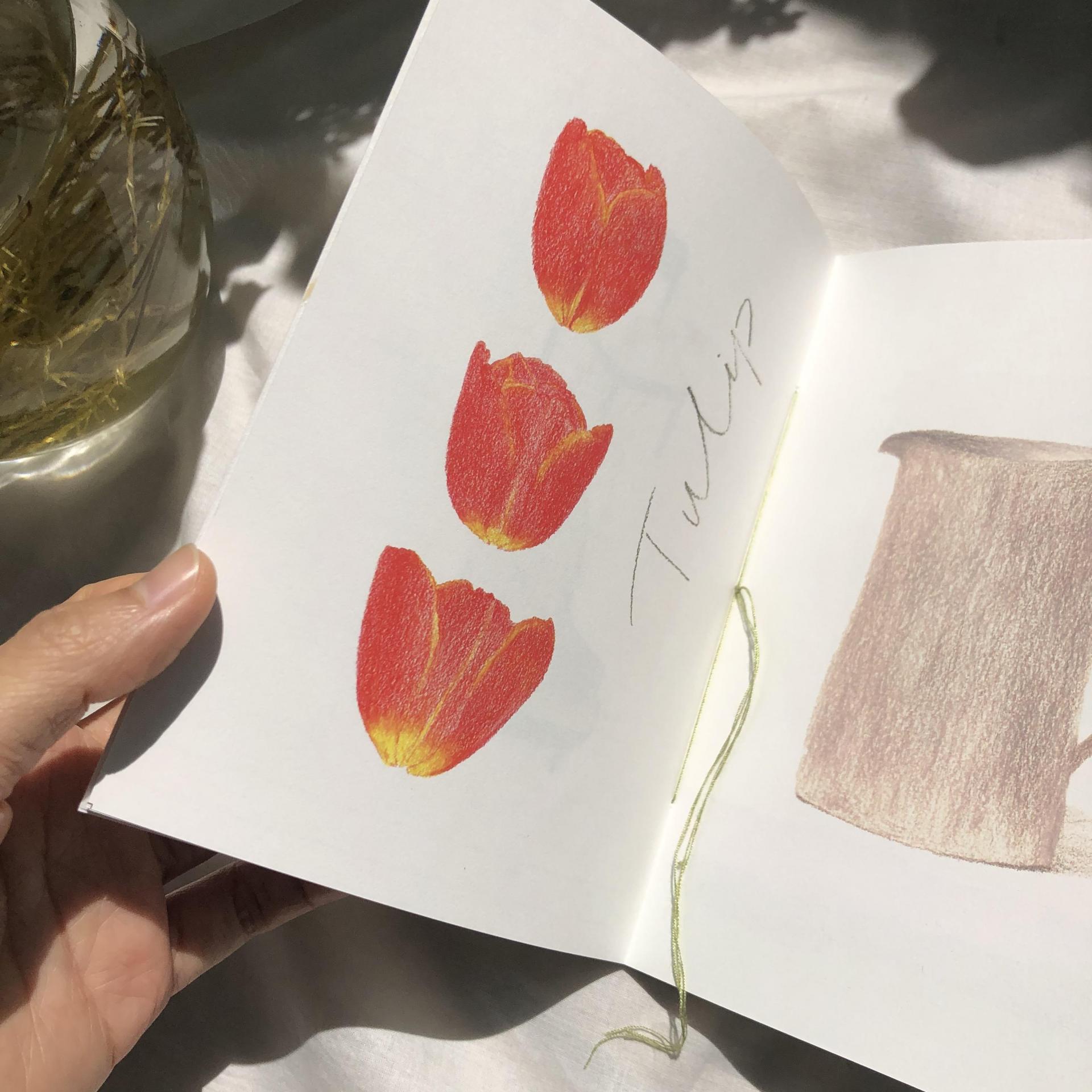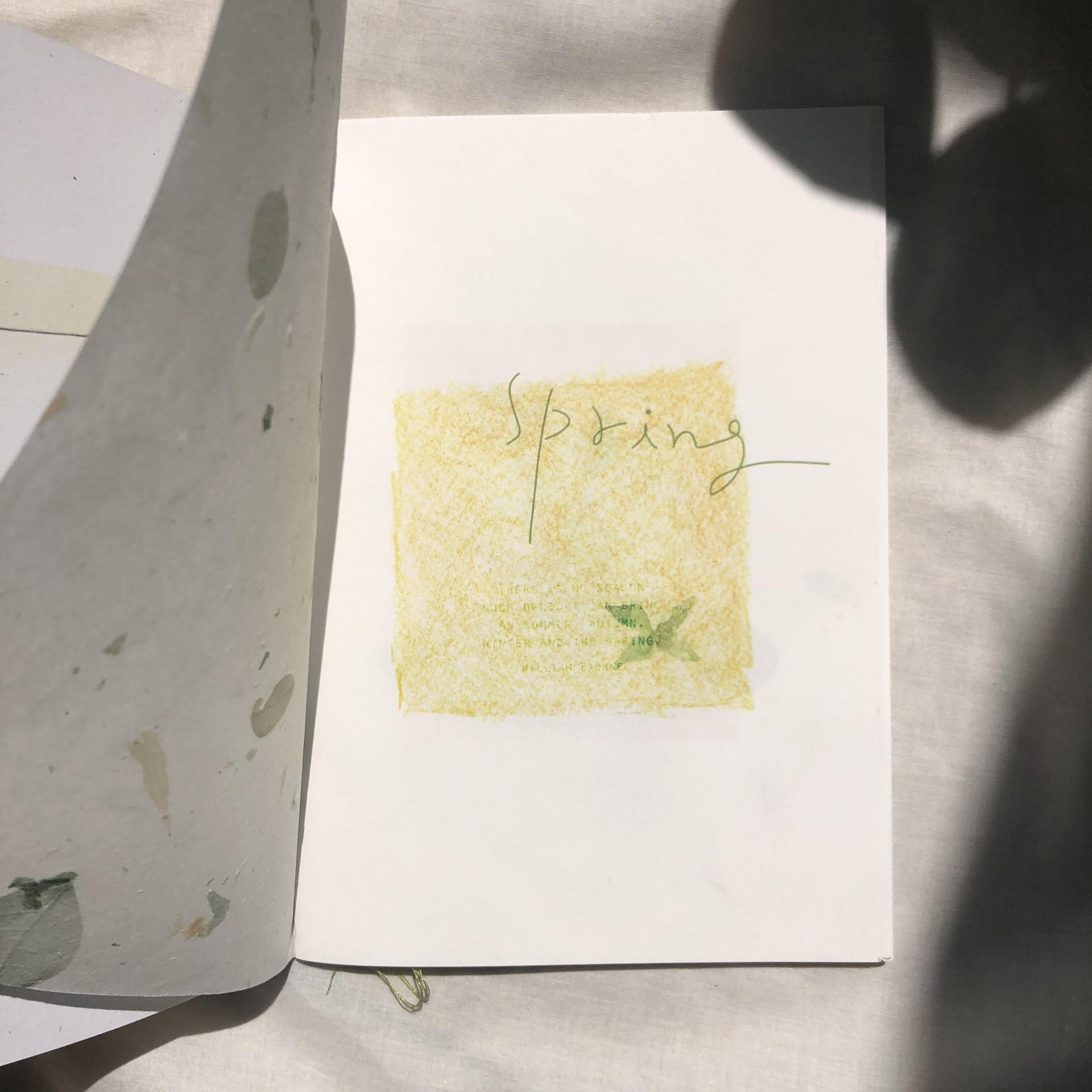 -봄과 잘 어울리는 연두색의 실로 직접 제본해 만들었습니다.