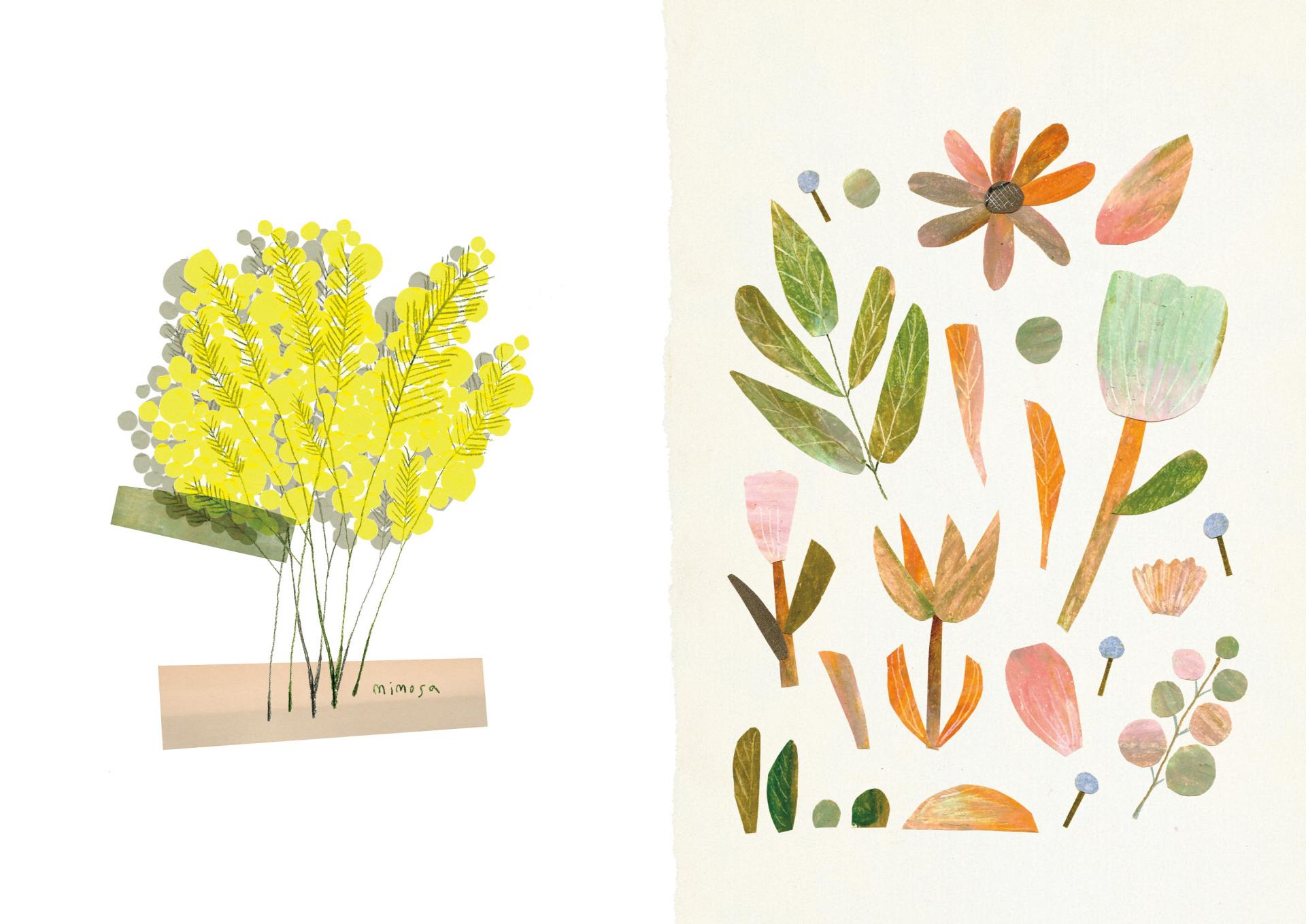 봄은 사계절 중 첫 번째 계절입니다. 추운 겨울을 온전히 보내고 나면 날씨는 거짓말처럼 포근해지고 잠시 웅크리고 있던 식물들은 다시 자라납니다. 작고 귀여운 싹이 나고 봉오리를 맺고 꽃을 피웁니다. 흙색의 나뭇잎과 뿌리, 여름의 시작을 알리는 초록색의 열매까지, 자르고 붙이고 그린 것들을 모아 책으로 엮었습니다. 겨울에서 봄은 어김없이 찾아오고 탄탄한 열매를 맺는 여름도 곧 오겠지요.