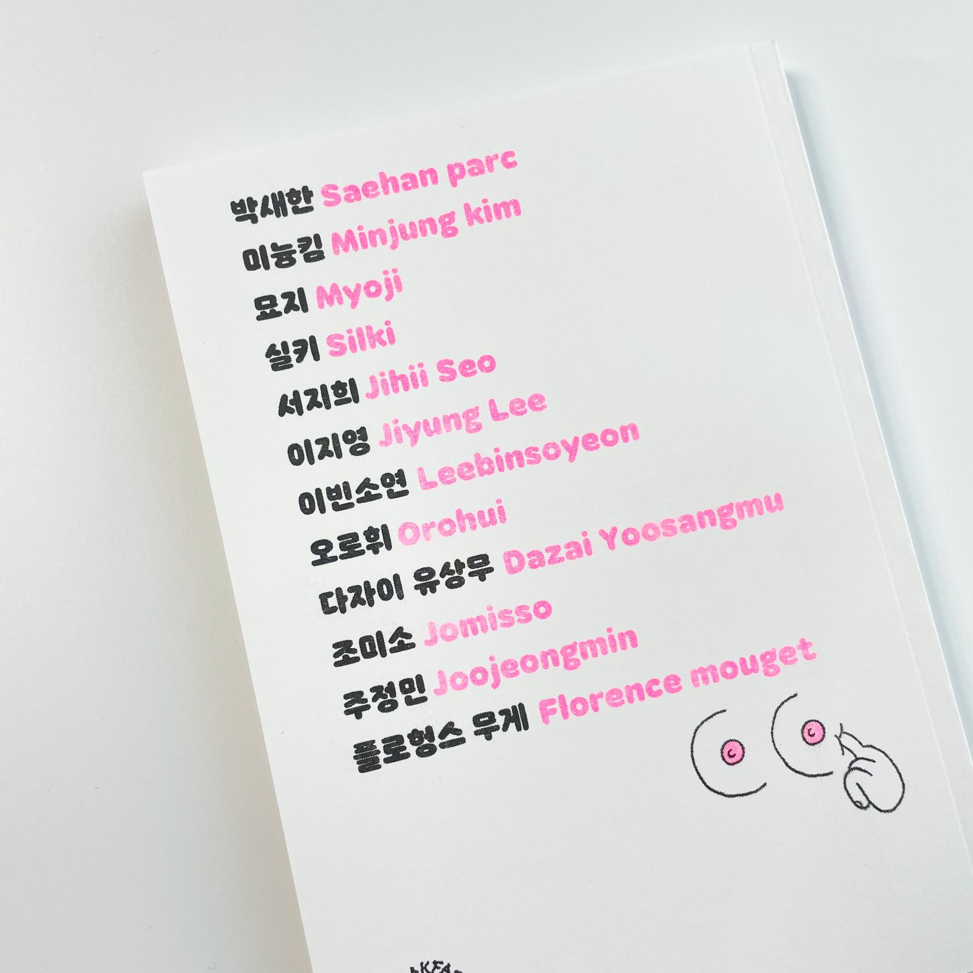 이지영 외 10명의 작가들이 참여한 엔솔로지 코믹북으로 여성의 신체인 가슴에 관한 각자의 이야기와 인터뷰를 담은 책입니다.
