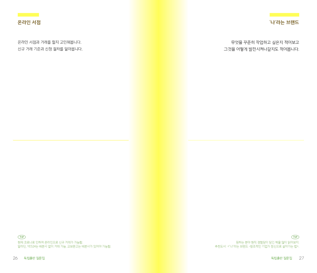 3년 동안 독립출판 단톡방에서 가장 많이 했던 질문 모음집 <독립출판 질문집>은 북디자이너와 함께하는 기획하며 디자인하기 <내책 만들기 나의 워크북>와 함께 펀딩한 질문집입니다.