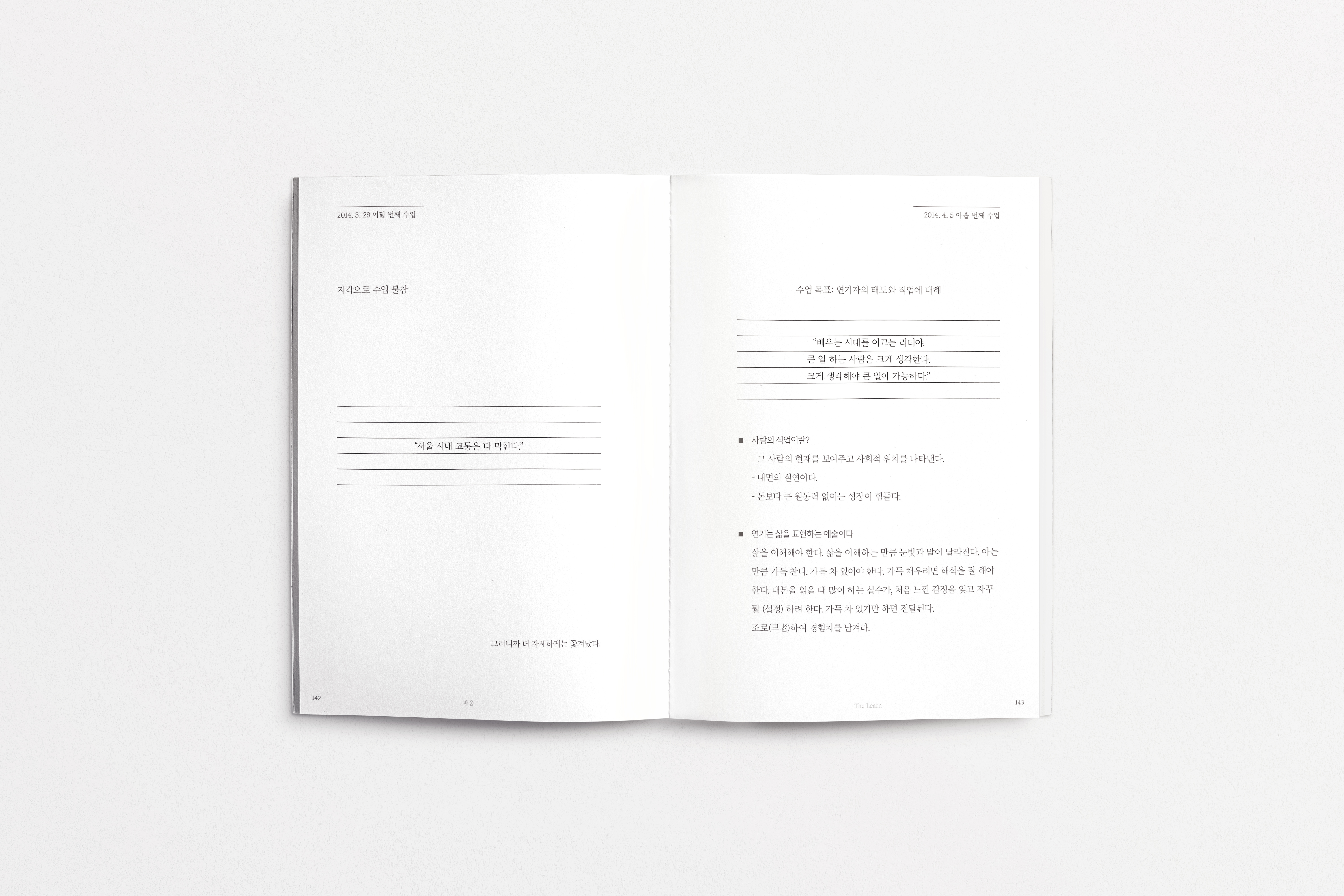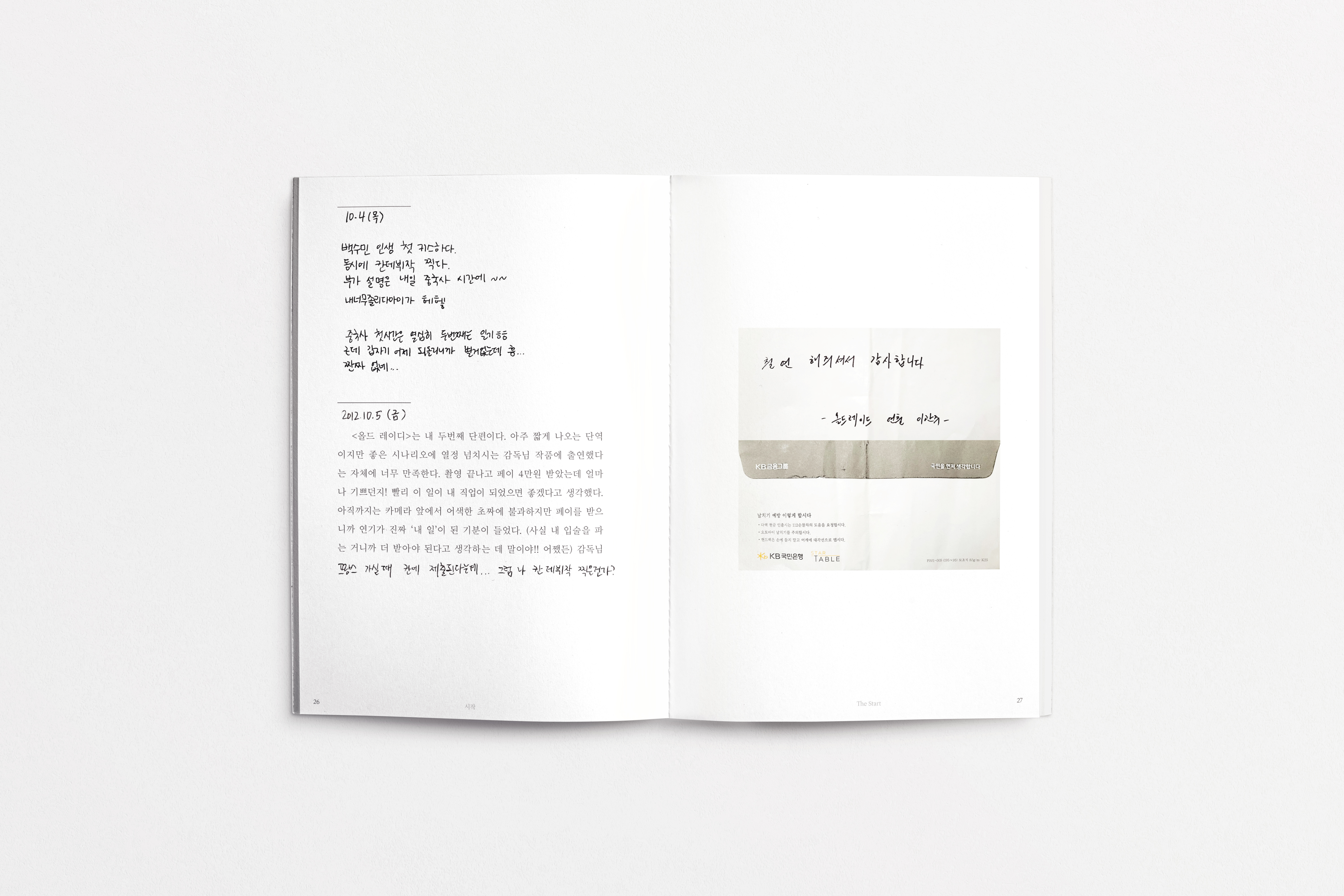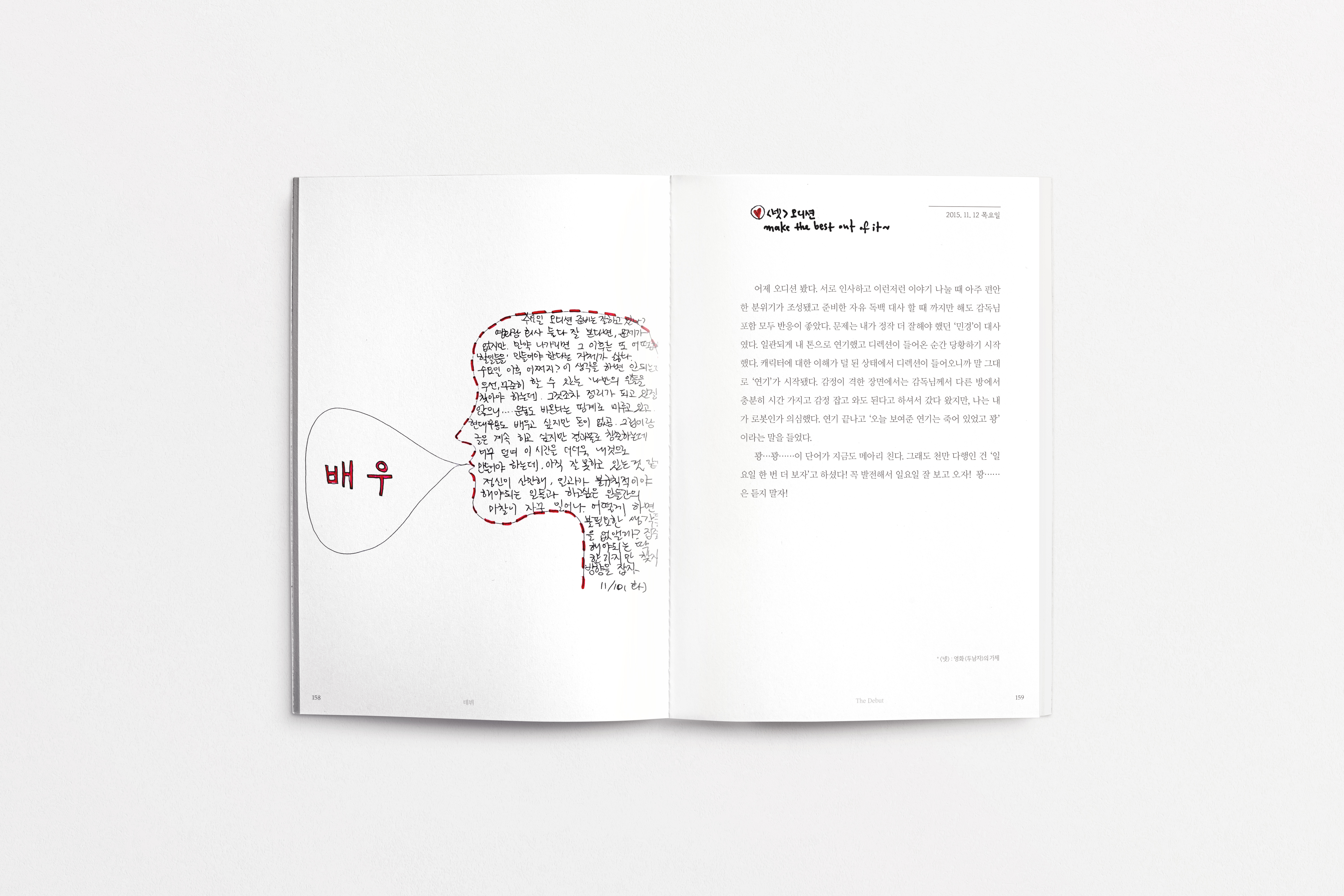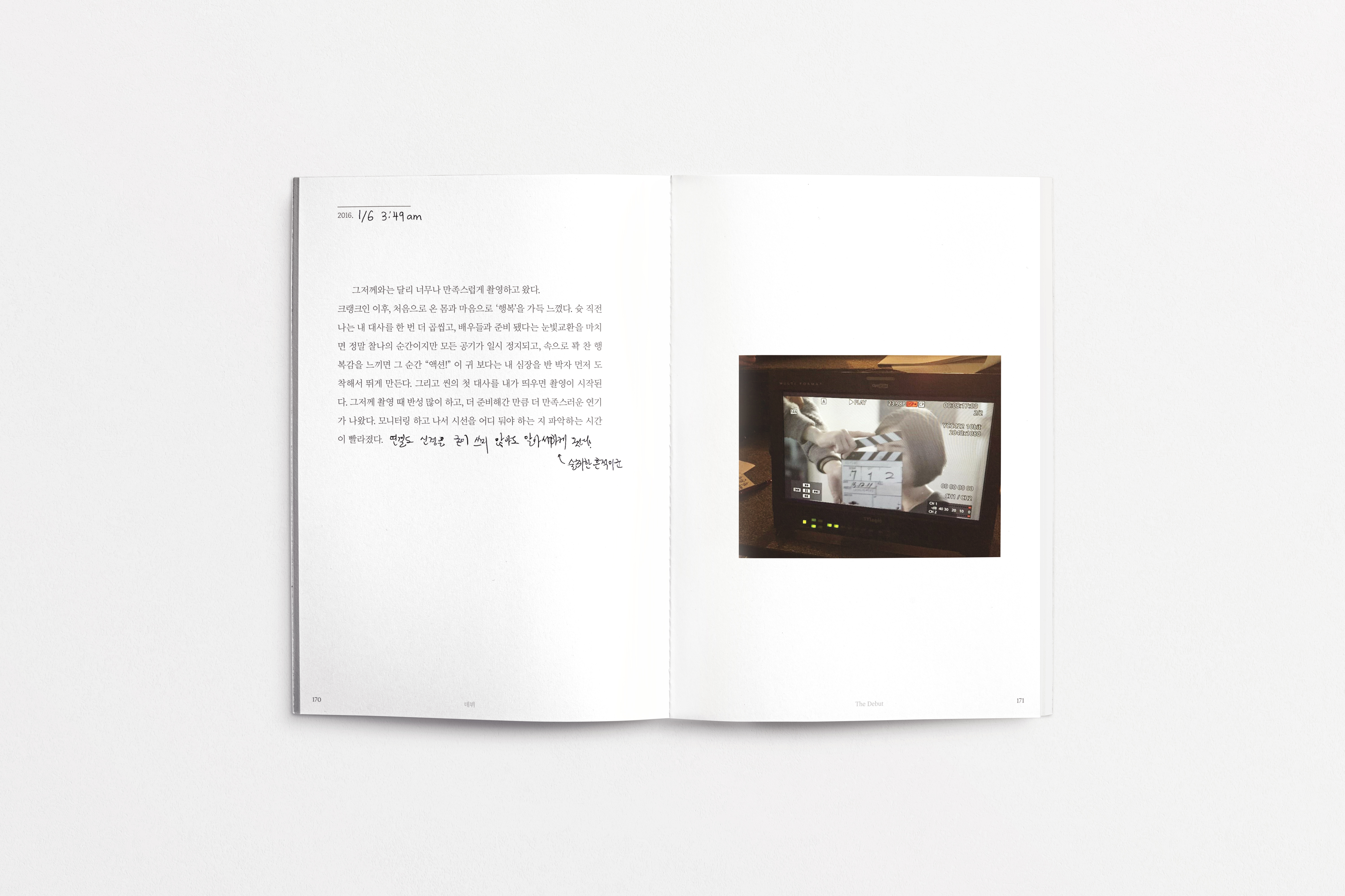 제 일기장입니다. 연기를 시작하려고 고군분투했던 스물살 때부터 이제 막 서른이 된 지금까지 10년 동안 일기를 꾸준히 썼습니다. 처음에는 연기 이론들을 한 군데에 모아 보고자 시작한 개인작업이 ‘누군가에게 이 글이 도움이 될 수도 있겠다’는 생각이 들어 책으로 완성하는 데까지 오게 됐습니다. 연기에 대한 고민, 기록, 생각 그리고 힘들었을 때 스스로 위로했던 과정들을 담아 냈습니다. 이 책 은 연기 지망생들의 계발서도, 20대들에게 열정을 이야기하는 에세이가 아닙니다. 그저 어디선가 치열하게 고민하고 조용히 아파하는 분들께 나도 서툴렀다고 그러니 괜찮다고 작은 안부를 묻는 책입니다. 나이와 직업 상관없이 우리 모두에게 아등바등하는 신인 시절이 있으며 이 책은 그 시절을 다루고 있습니다. 저 또한 연기 신인이기 이전에 인생 신인입니다. 그럼, 제 신인시절 일기장을 공개하겠습니다.