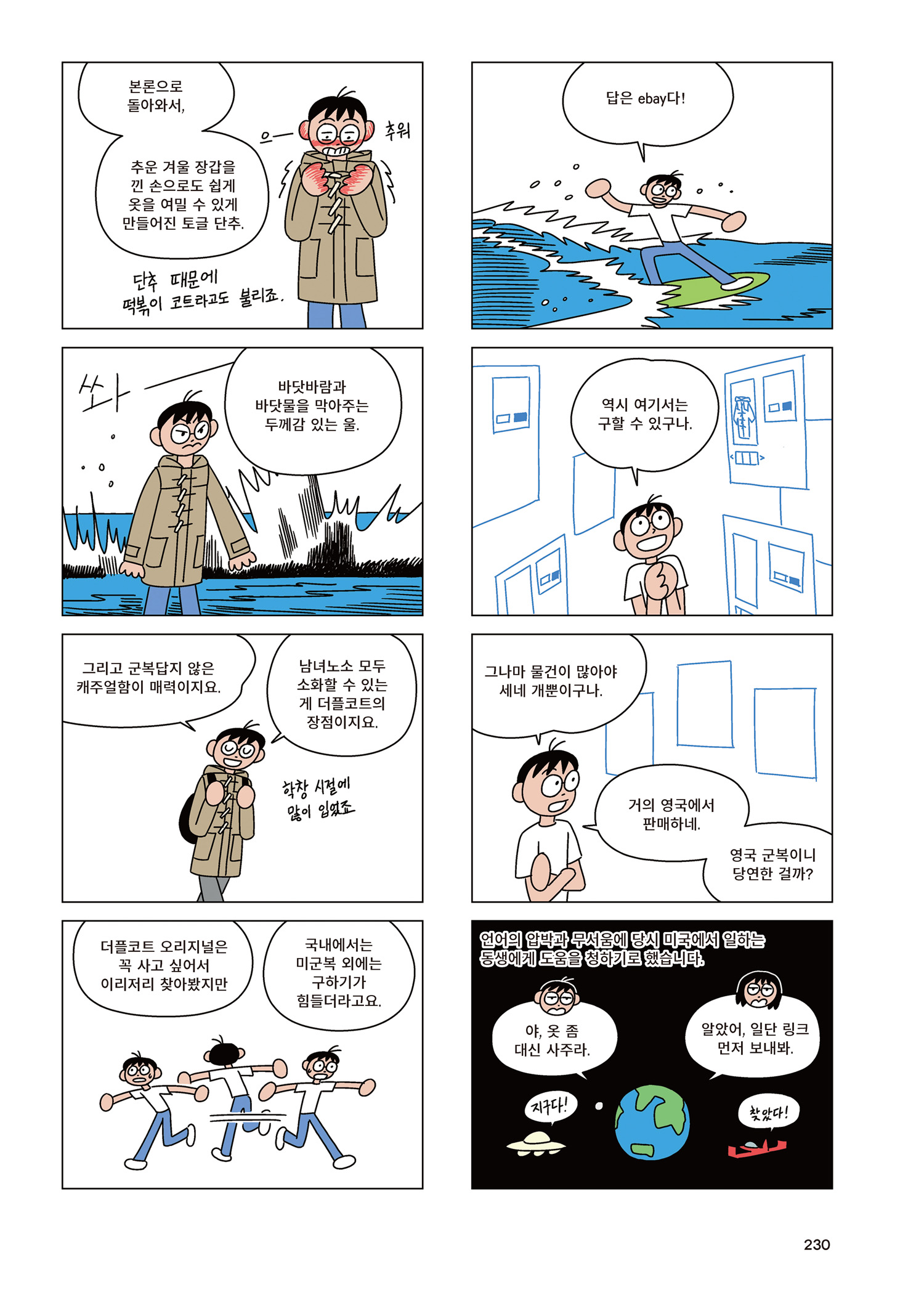이번 여가생활 확장판에선 4화의 에피소드가 추가되었습니다. <안경>, <예술가>, <원 모어 띵>, <떡볶이 코트>를 통해 2년의 시간 동안 조금씩 변한 작가의 최신 작업도 볼 수 있습니다. 이 얼굴 동그란 아이는 나를 닮은 것도 닮지 않은 것도 같습니다. 제 여가생활 이야기를 들어보시겠어요? 여가생활을사전에서는 ‘일이 없어 남는 시간에 취미로 하는 생활’이라고 풀이하고 있는데요. 시간을 남기려고 무진장 일을 몰아 끝내고서 절박한 마음으로 몇 획 쓰고 그리는 날도 적지 않은 걸 보면, 여가생활도, 여기서 괄호 두 개를 넣어 (여가)를지운 ‘생활’도 역시 벅찬 도전이네요.