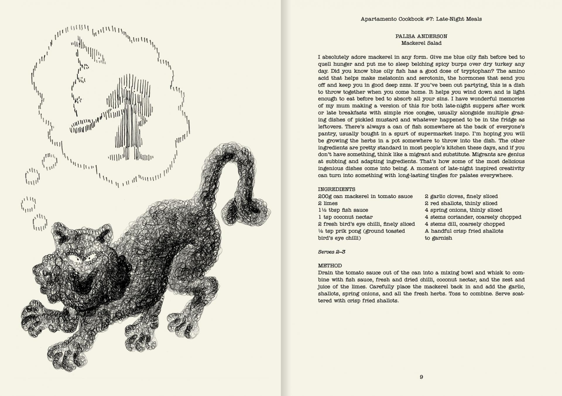1년에 한 번 발행되는 아파르타멘토의 쿡북 7번째 입니다. 이번 주제는 ‘Night meal 야식’입니다. 긴 교대 근무를 마치고 늦게 귀가 하거나, 즐거운 저녁을 보내고 비틀거리며 문을 열고 들어왔을 때, 저녁 식사 후 배가 고프거나 흐릿한 눈으로 부엌을 뒤질 때 이 책이 필요합니다. 전 세계 셰프와 식도락 전문가의 16가지 레시피가 담겨 있습니다.
