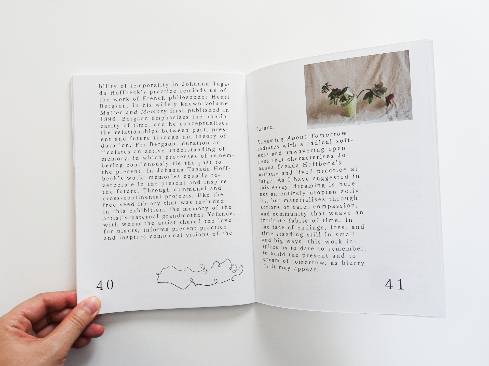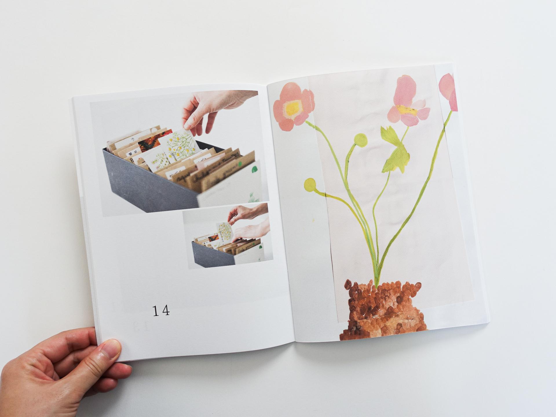 ‘일상의 예술적 실천’이라는 작가 고유의 탐구 방식을 토대로 현재 작업중인 아날로그 다이어리 시리즈 Analog Diary 시리즈의 사진과 ‘Seed Library' 시리즈의 드로잉작, 세라믹 디자이너 올리비아 피데스 Olivia Fiddes와 직물 아티스트 폴린 시모네 Pauline Simonet의 독특한 콜라보레이션 작품, 가드닝 드로잉 클럽 The Gardening Drawing Club에서 진행했던 드로잉 그리고 오슬로 대학교 연구원인 베로니카 무히취 Veronika Muchitsch가 작성한 에세이 등을 담고 있습니다.