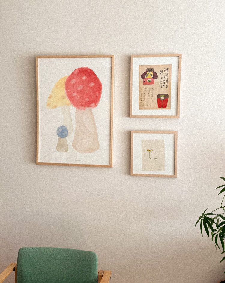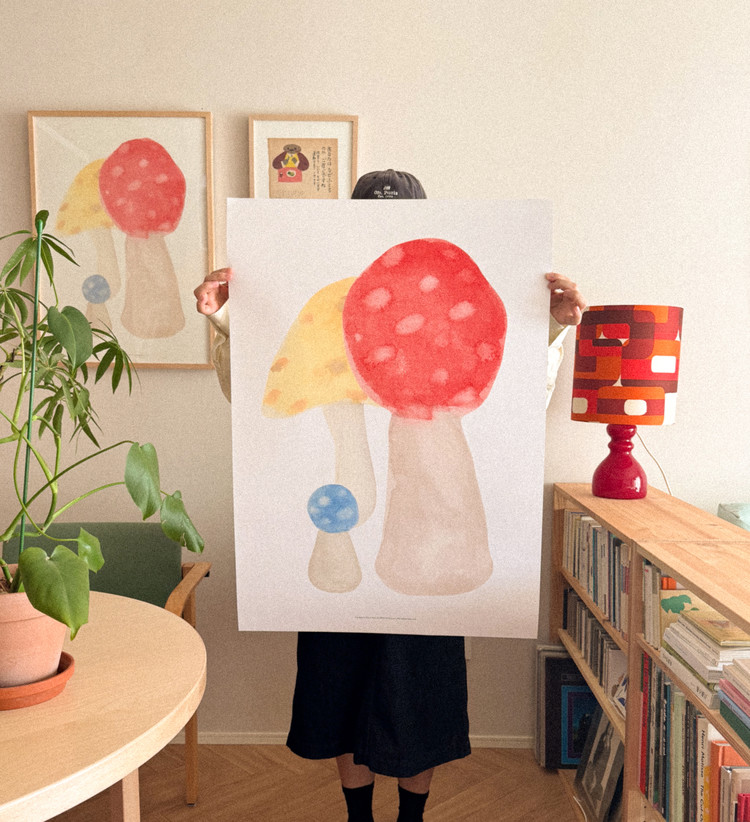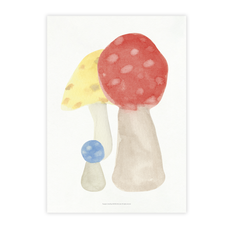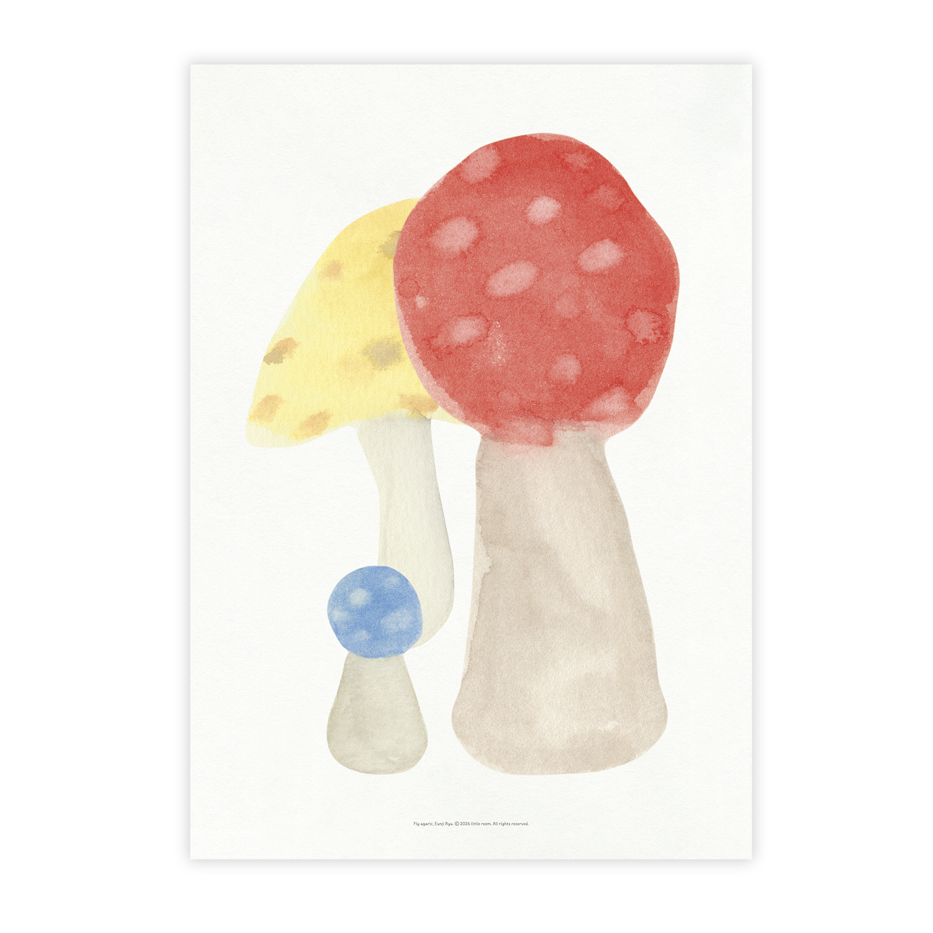 어딘가에는 꼭 있을 것만 같은 빨강, 노랑, 파랑 광대버섯을 그린 그림 입니다.