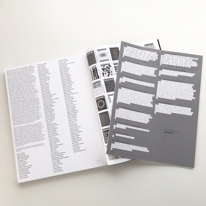 이번 호 「그래픽」은 암스테르담의 예술학교 헤릿 리트벨트 아카데미 그래픽디자인과 졸업반 학생들이 함께 만들었습니다. 각 컨트리뷰션은 “리트벨트 그래픽디자인과의 교육이란 어떤 것인가?”라는 질문에 나름대로 답하죠. 이 열린 질문에 대한 다수의 답변이 오늘날 우리 과의 현실을 여실히 반영하고 있으며 리트벨트의 그래픽 디자인 교육은 강의실 안에서뿐만 아니라 밖에서도, 사실은 대체로 강의실 밖에서 이루어진다는 사실을 말해 줍니다.