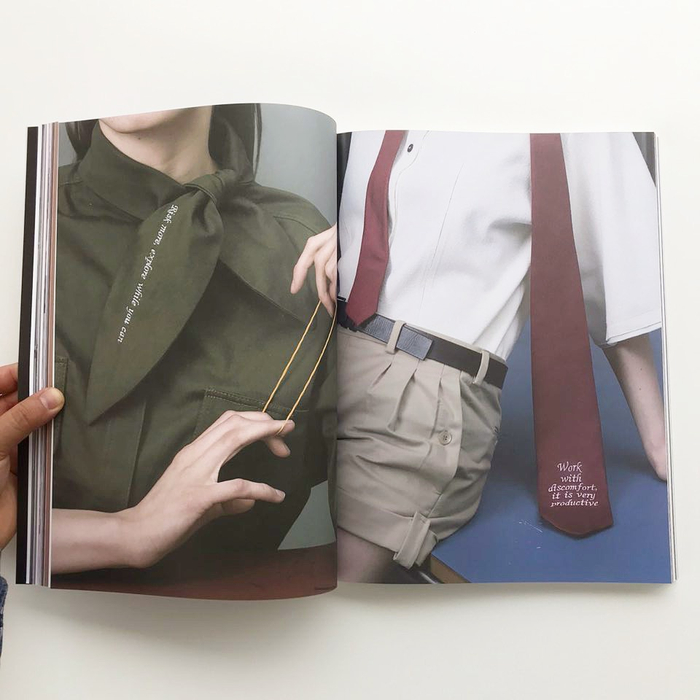 이런 방식의 제본은 ‘질문’과 ‘답변’, ‘보완’과 ‘보충’, ‘옳음’과 ‘그름’, ‘안’과 ‘밖’ 사이에 긴장감을 형성하는 동시에 학생들이 각자 컨트리뷰션을 통해 그래픽 디자인에 더 자유로이 접근하도록 해 주었습니다. 이번 2개 국어 이슈에 실릴 텍스트를 어떻게 디자인하고 살릴지에 관해 기나긴 토론을 촉발하기도 했고요. 콘텐츠 자체는 그 구성 방식, 디자인, 제작 과정을 통틀어 학생들이 배운 바와 그들의 관심사를 잘 보여 주어야 합니다. 간단히 말해 저는 작업 그 자체로 소통할 수 있어야 한다고 믿으며 이런 믿음을 바탕으로 가르치려고 합니다. 이런 패러다임 안에서 위험성과 책임감이 이번 이슈의 출간을 목표로 상호작용했습니다.