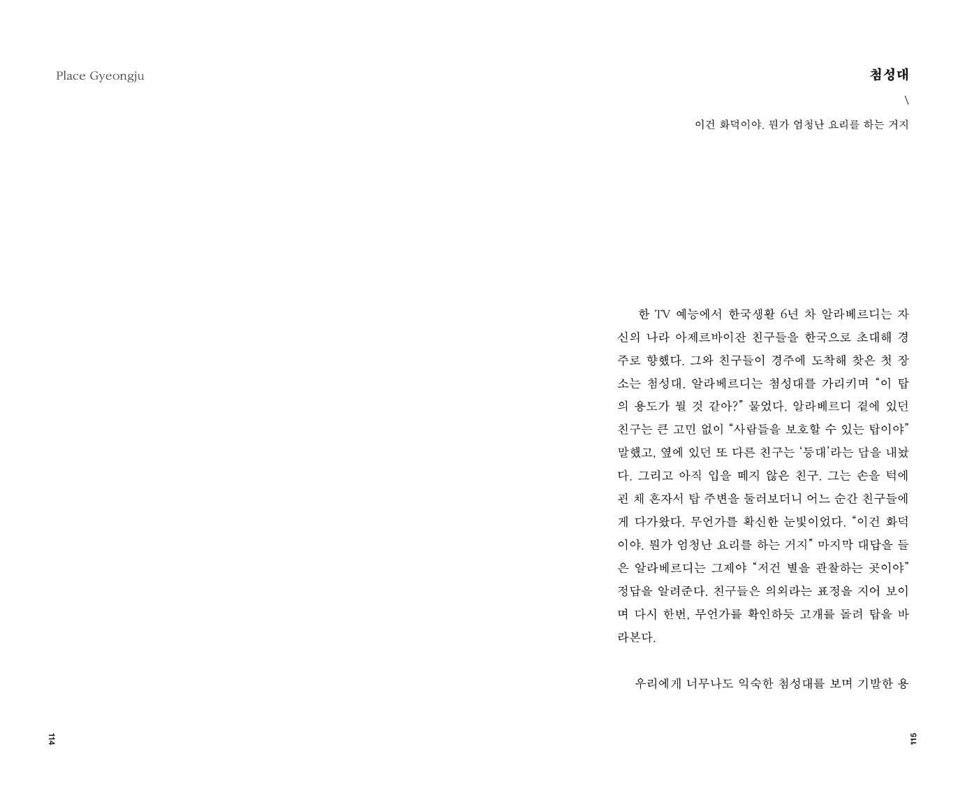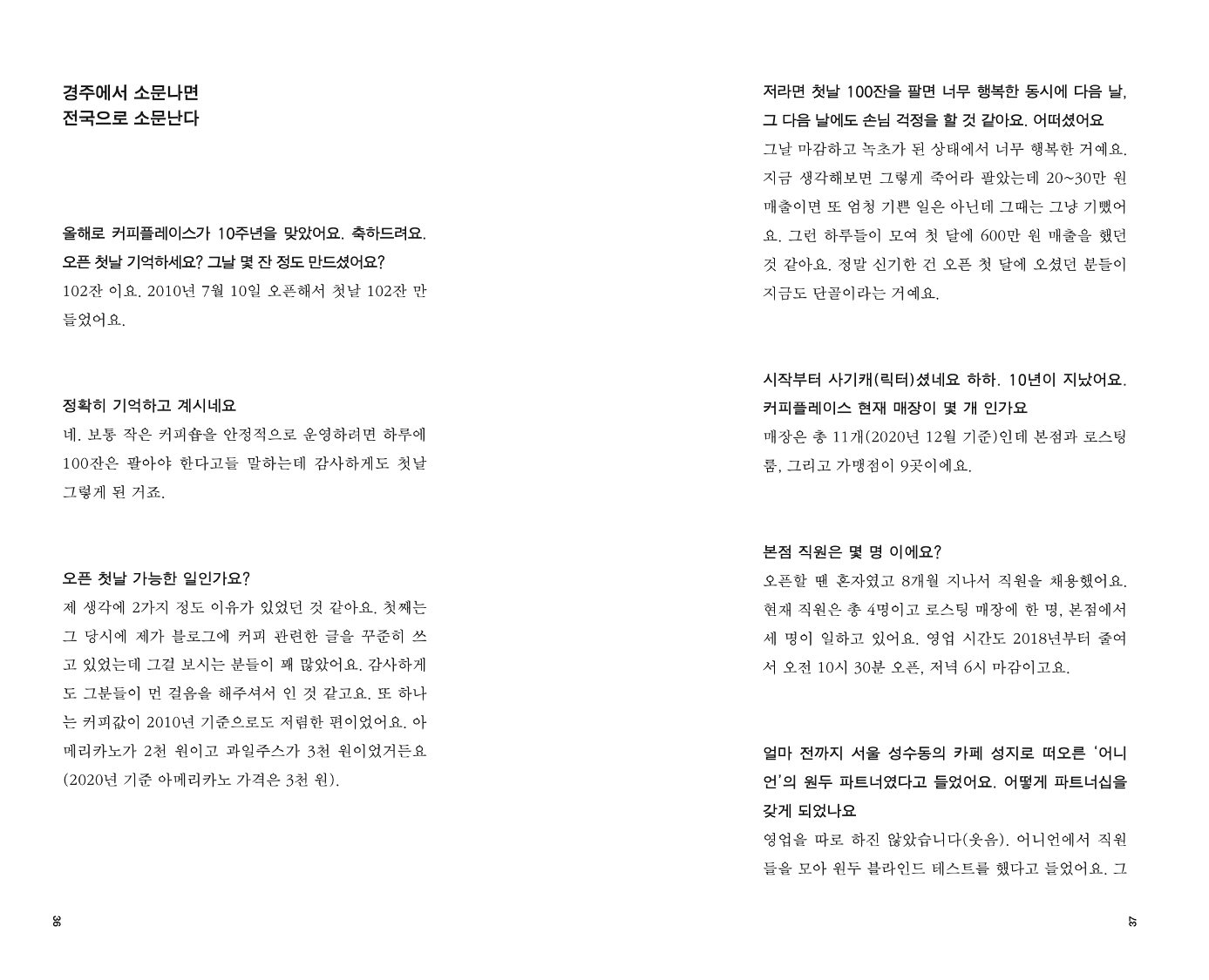 로플 매거진 첫 호는 ‘PLACE’. 내가 살고 있는 도시, 살고 싶은 동네 경주를 다양한 목소리로 전합니다. 10년 전 경주에 작은 로스터리 카페로 시작해 현재 11개 지점의 대표로서 자신만의 브랜드를 운영 중인 <커피플레이스> 정동욱 대표 인터뷰 ‘People Interview’, 우리가 사랑한 여행 작가 이병률, 변종모의 경주 에세이 ‘Local Essay’, 나고 자란 동네를 익숙한 시선으로 담은 ‘Photo We Love’, 문명을 바라보는 또 하나의 시선 ‘Place GyeongJu 첨성대’, 가본 적 없는 곳을 걸어보는 방법 ‘Book Curation’, 다른 곳에서 살아보는 상상 ‘Comment’.
