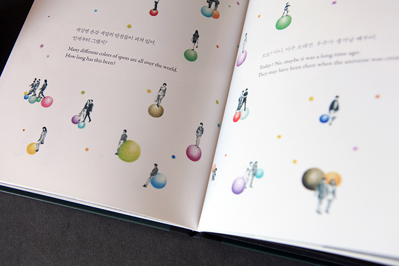 어느 날 소녀는 얼굴에 난 검은 반점을 발견합니다. 소녀는 사람들이 자신의 검은 반점을 보고 흉을 볼까 봐 움츠러들지요. 검은 반점이 상징하는 것은 열등감, 상처, 단점 같은 부정적인 감정입니다. 자신의 단점을 인식하는 순간 자존감은 끝없이 떨어집니다. 하지만 소녀는 어느 날 문득 검은 반점을 발견했듯이 어느 날 문득 다른 이들도 주황 반점, 빨강 반점, 파랑 반점을 가지고 있다는 걸 알게 됩니다.
