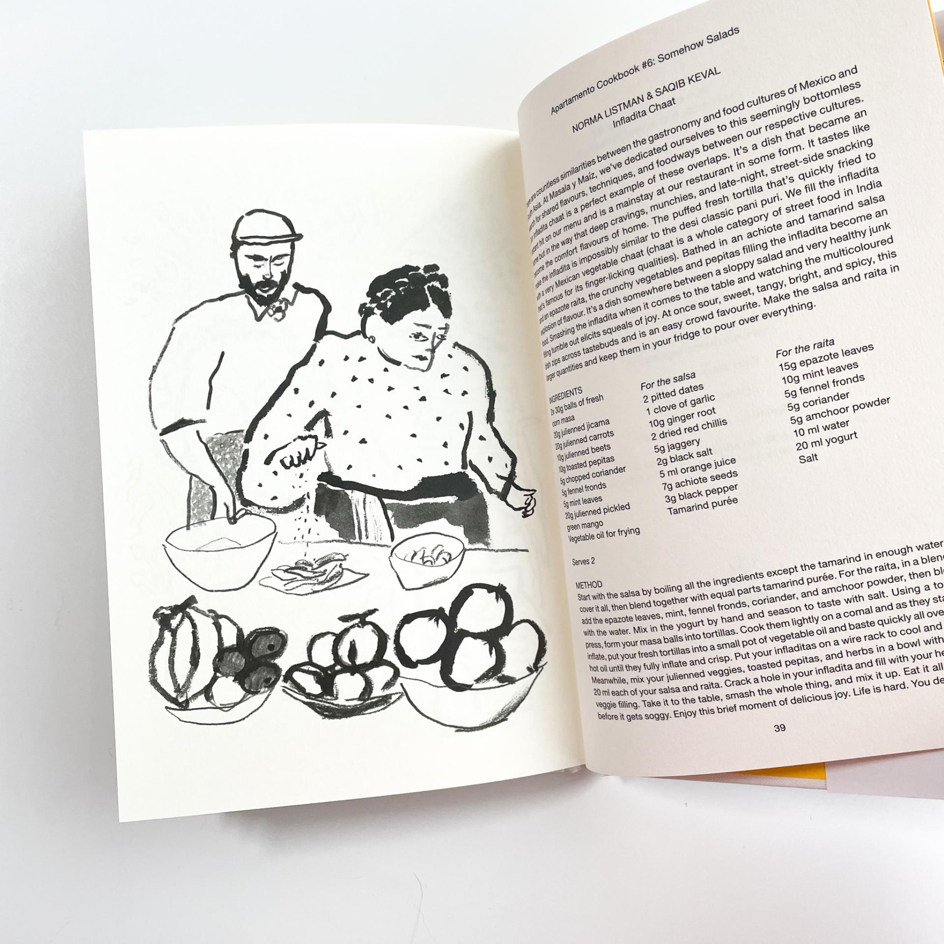We’re back with the sixth annual Apartamento cookbook, this time dedicated, somehow, to salads. Somehow salads? Surely a somewhat spurious subtitle. Well, let us set the record straight: after coming to the end of this chapter in the culinary journey we embarked upon six years ago, we started to wonder whether the term ‘salads’ was broad enough to define such a collection of recipes. Pig’s ear cocktail from our friends at Tarragona’s Bar Cortijo? Late-night guinea fowl, the original staff meal from Bao, London? Grilled and glazed greens from Septime, Paris, the type to earn them a Michelin star? Or the everyday life classic from one of South Korea’s top chefs, his clams in cho-gochujang sauce? We’ll leave it up to you to decide… Then there’s seaweed from a California commune, burnt-pecan dressing, romesco sauce, winemakers and writers, and a salad baked in cheese from the cook who opened a restaurant with Gordon Matta-Clark in the ‘70s. All up, the sixth annual Apartamento cookbook is a broad family, a seminal series of somehow salads to keep you coming back for more.