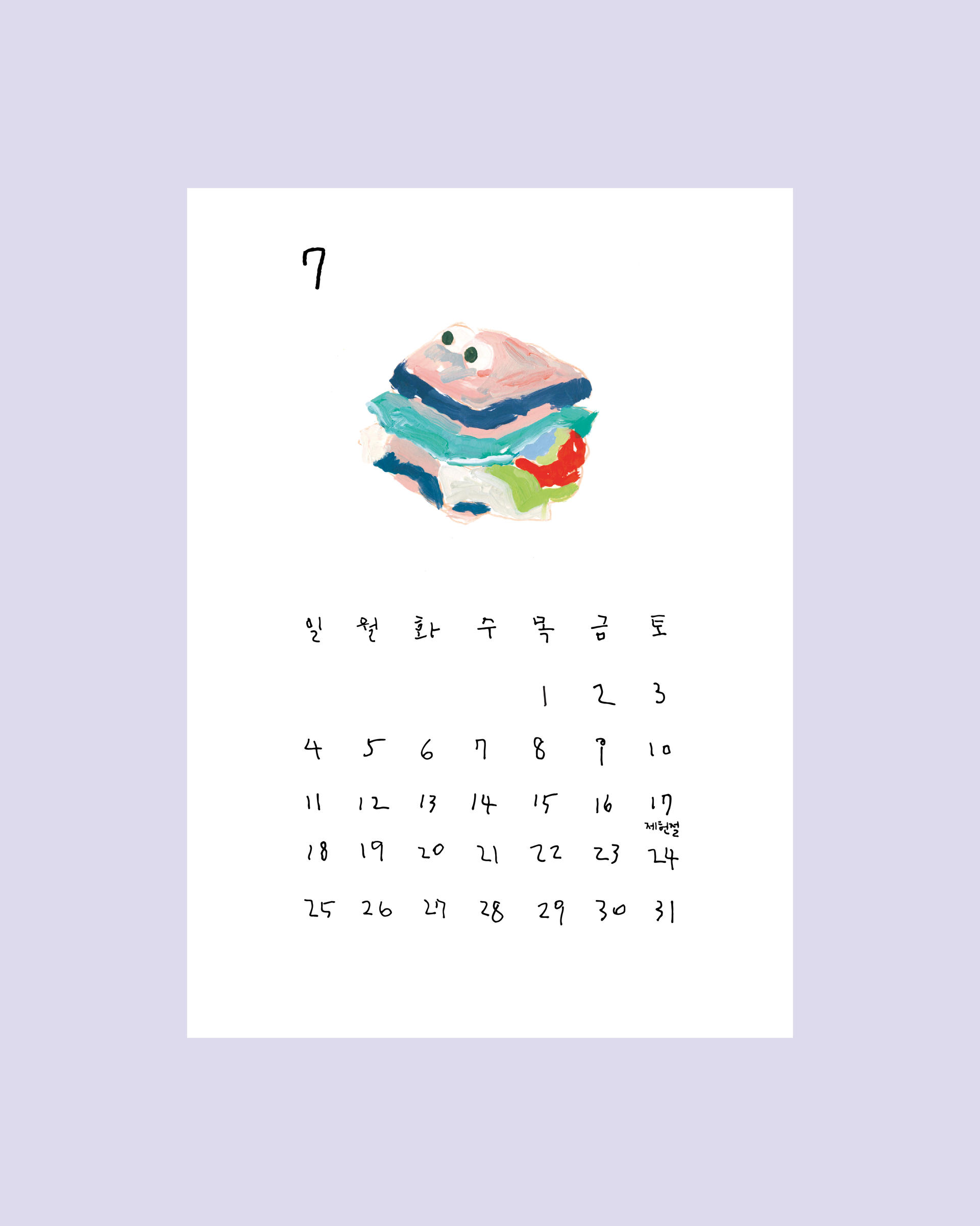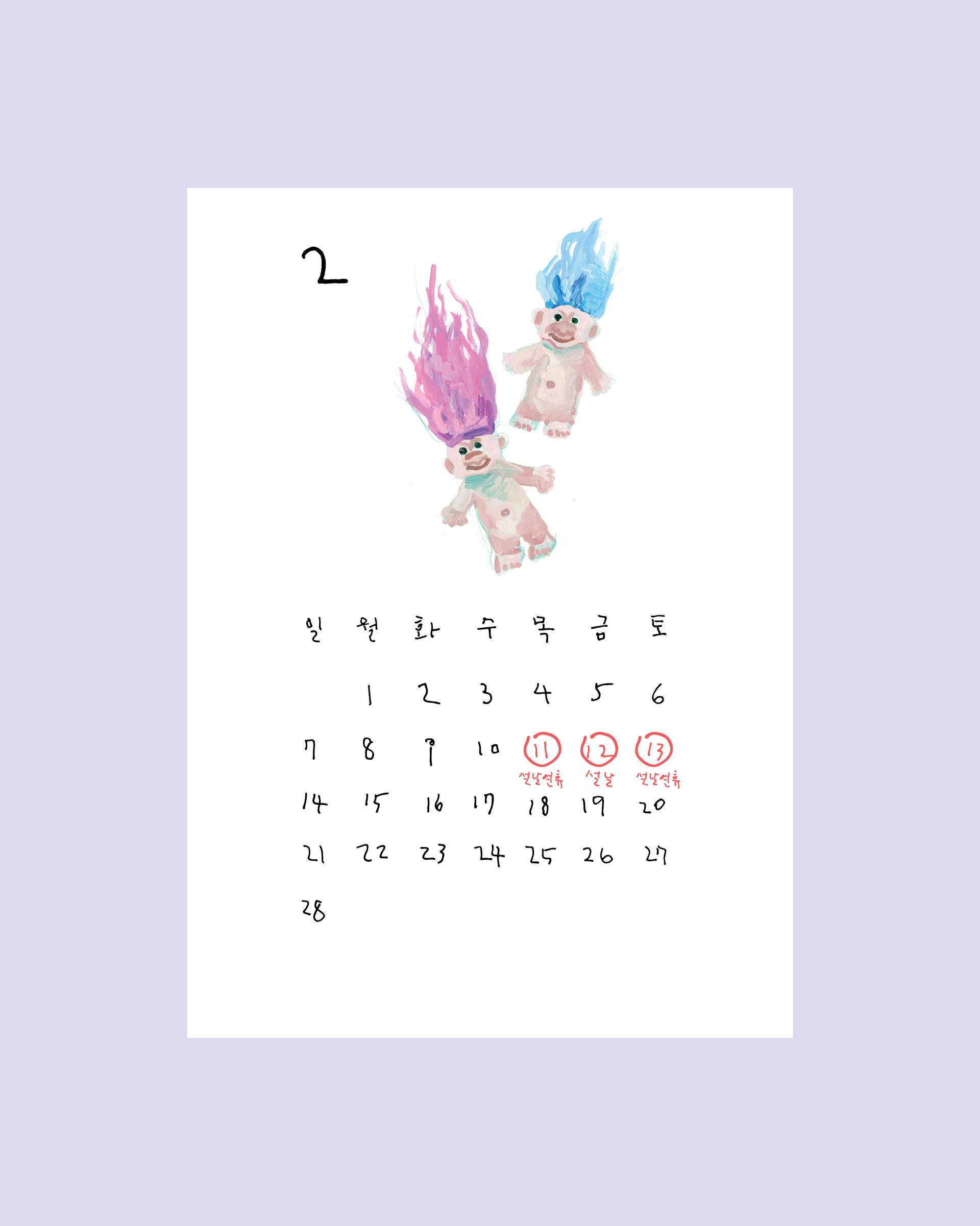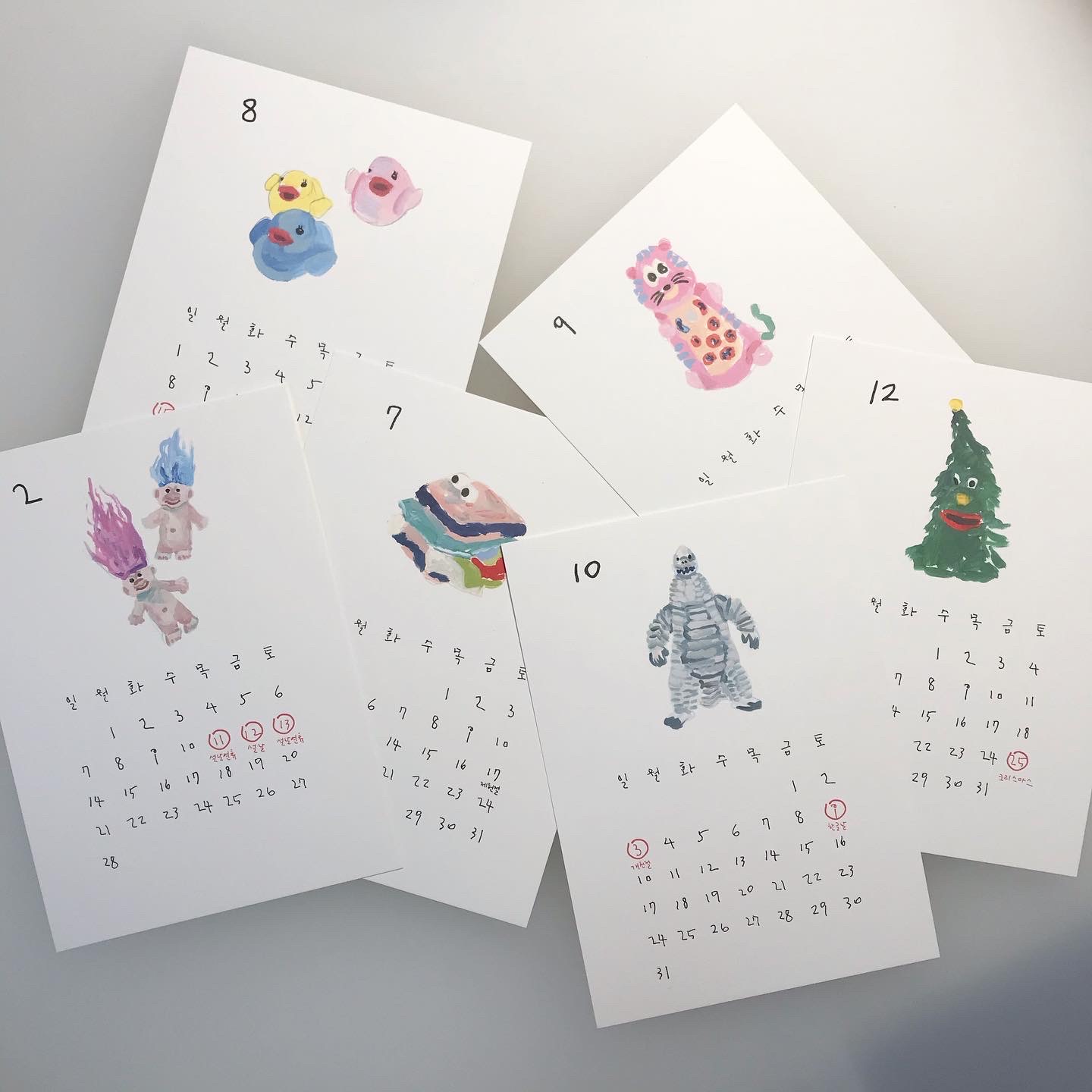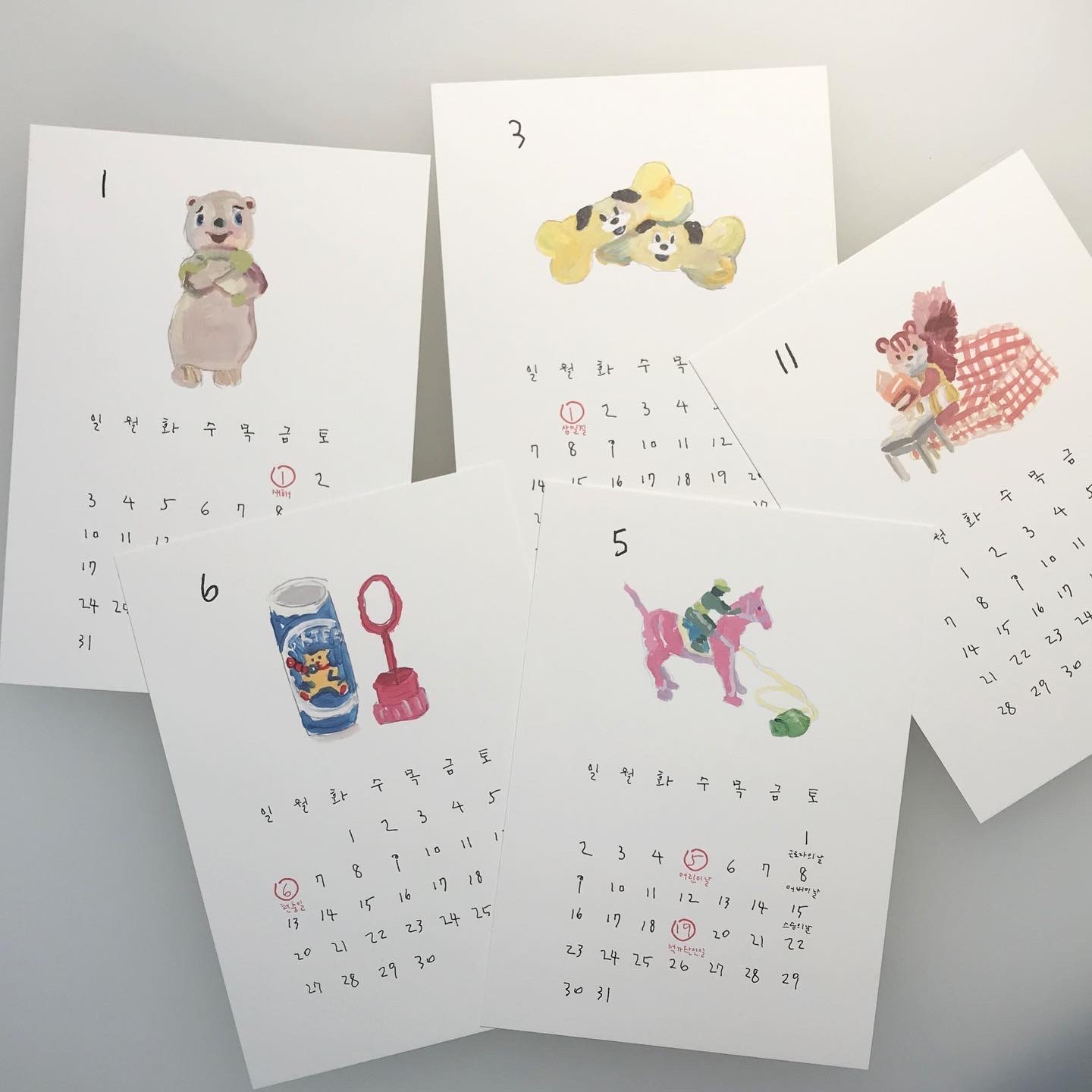 회화 작가 사박의 작품으로 제작한 2021년 달력입니다. 일상에서 발견한 이미지를 자신만의 스타일로 그려내는 사박 작가는 장난감 친구들을 달력의 주인공으로 그렸습니다. 2021년을 이 작고 이상한 친구들과 함께 해보세요. 엽서 형태로 제작된 달력은 독특한 앞뒤 표지와 함께 14장으로 구성됩니다. 별도의 클립 및 거치대는 포함되어 있지 않으며, 타공되어 있지 않습니다. 각자의 취향에 따라 거치 또는 부착하여 사용할 수 있습니다.