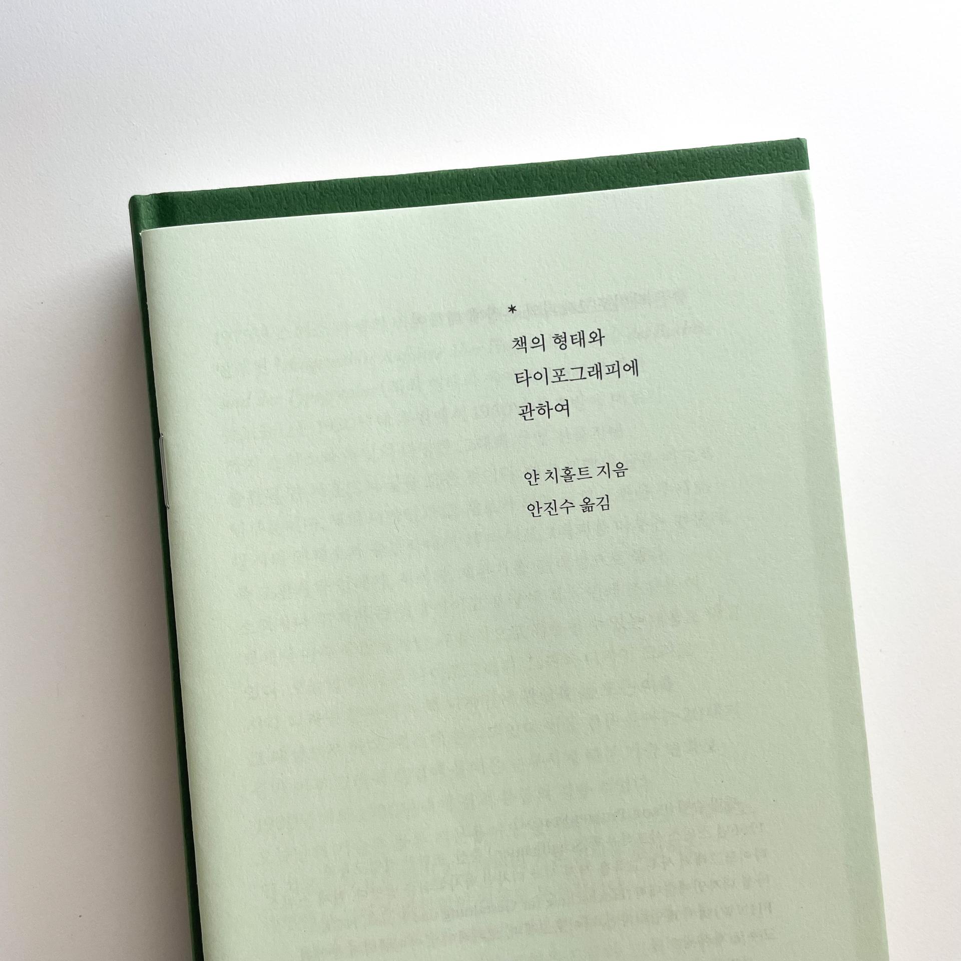 이 책은 얀 치홀트가 남긴 수많은 글 중에 그가 사망한 다음 해인 1975년 바르크호이저에서 발행된 독일어 원서( 『Ausgewählte Aufsätze über die Fragen der Gestalt des Buches und der Typographie』)를 우리말로 옮긴 것이다. 한국어판에서는 1991년에 출간된 영문판(『 The Form of the Book 』)에서 빠진 부분까지 모두 복원해 거의 모든 부분을 빠짐없이 번역했으며, 얀 치홀트의 직설적이고 견고한 문투를 최대한 살리려고 노력했다.